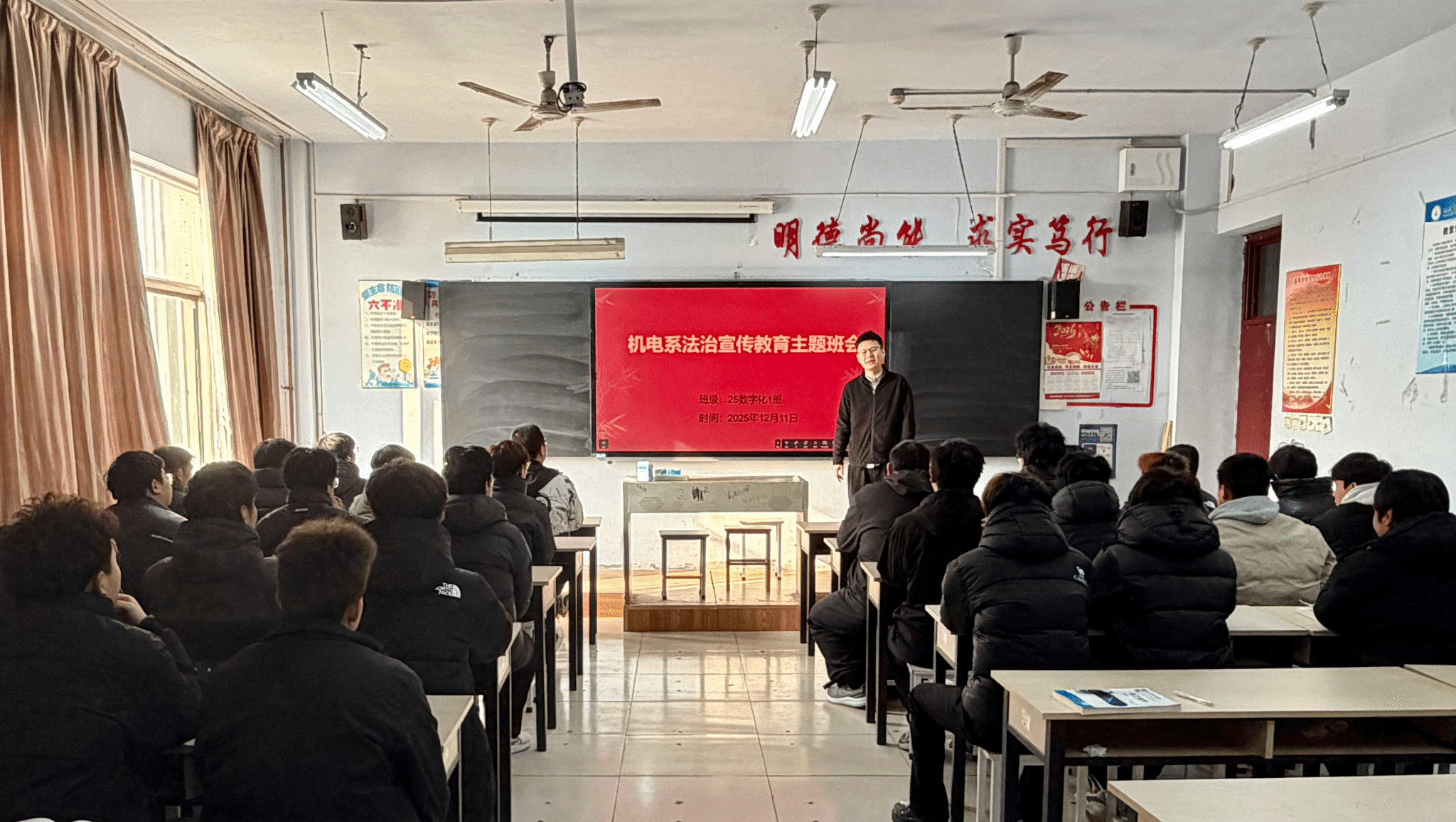 12月是法治宣传教育月,为扎实推进立德树人根本任务,将法治精神融入机电专业人才培养全过程,机电系创新推出“线上专家讲堂启智+宪法知识竞答比学+主题班会凝心”三维活动模式,打造沉浸式、互动式法治宣传教育矩阵。“专家解读把法律条文变成了身边案例,让我们明白专业学习和未来工作都离不开法律‘护身符’。”观看完线上公益大讲堂后,机电一体化技术专业2025级学生范皓然深有感触地说。活动中,机电系组织全体师生集中收看《中华人民共和国法治宣传教育法》...
