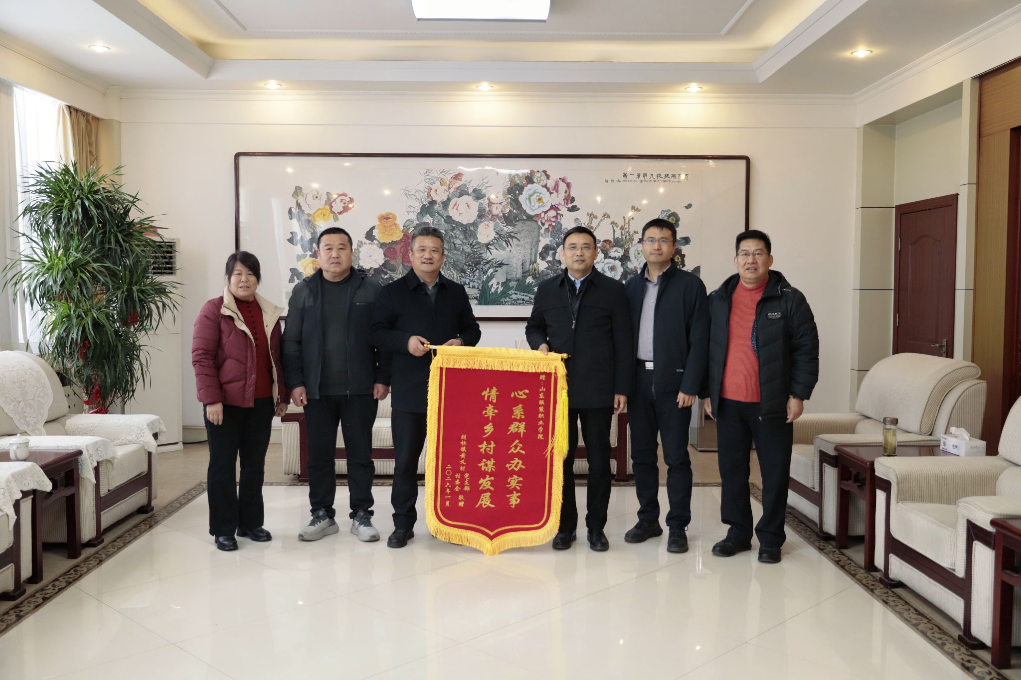 2月10日上午,新泰市刘杜镇黄义村“两委”一行专程到学院赠送锦旗,对学院以及驻村第一书记王思顺两年来的帮助和付出表示感谢。“驻村不是走过场,是要沉下心来办实事、解民忧,把乡村振兴的蓝图绘在黄义村的土地上。”自2023年11月受组织选派、担任新泰市刘杜镇黄义村第一书记以来,王思顺始终牢记初心使命,在学院党委的大力支持下,紧紧依靠村“两委”班子和全体党员群众,以党建为引领,以产业为抓手,强组织、兴产业、优环境、...