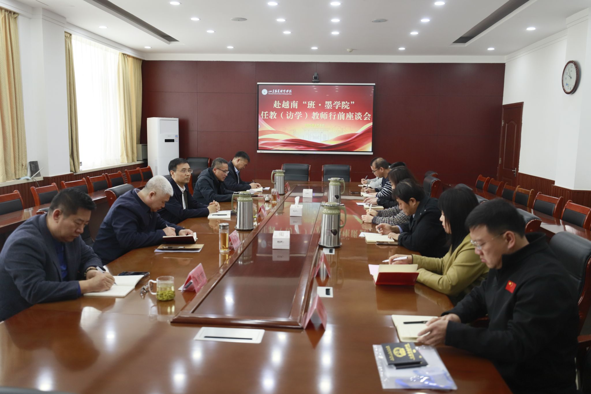 4月8日,学院召开第二批赴“越南-班·墨学院”任教教师行前座谈会。学院党委副书记、院长马培安,党委委员、宣传处(统战部)处长(部长)李金强,党委委员、组织人事处处长王志荣,党委委员、党委(院长)办公室主任杨庆福出席。教务处、服装工程与管理系负责同志,对外合作处相关负责同志及学院赴“越南-班·墨学院”任教教师马宝利、张淑民参加座谈。座谈会由党委委员、副院长陈健主持。马培安代表学院党委对两位老师进行殷切嘱托。...