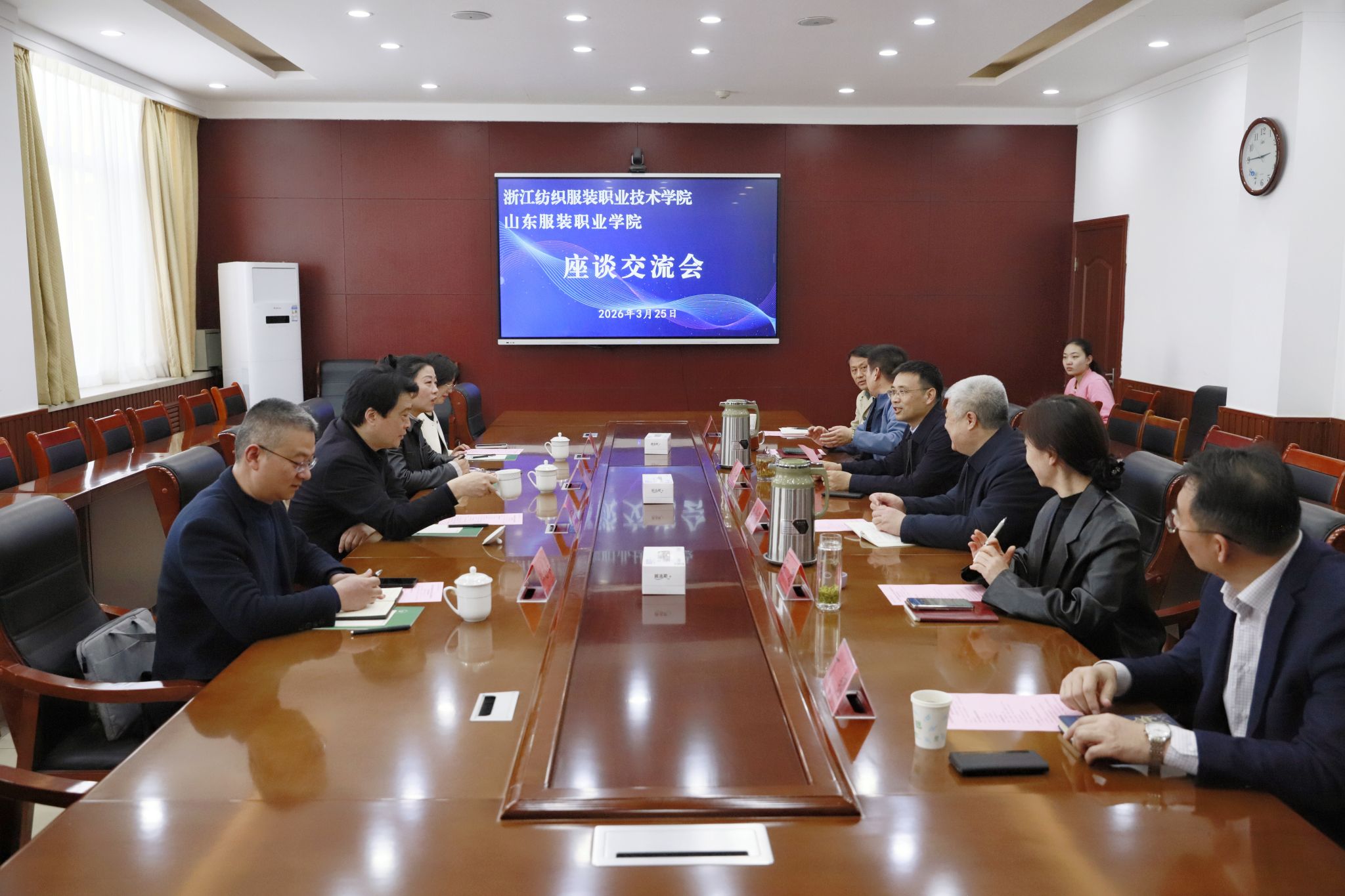 3月25日,浙江纺织服装职业技术学院校长郑卫东、时装学院院长陈海珍、纺织学院院长郑志荣、教师发展中心主任王海亚一行四人来山东服装职业学院交流调研。学院党委副书记、院长马培安,党委委员、宣传处(统战部)处长(部长)李金强,党委委员、党委(院长)办公室主任杨庆福以及教务处、服装工程与管理系、服装设计与表演系负责同志等参加座谈。郑卫东一行先参观了学院泰安市职业教育公共实训服务中心,随后进行座谈。座谈会上,马培安对郑卫东一行人的到来表示热烈的欢迎。...