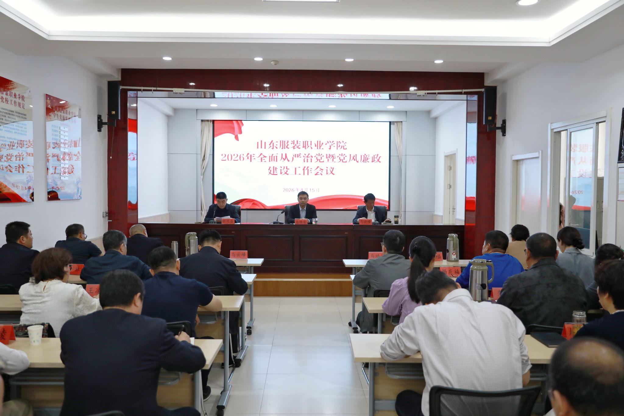 4月15日,山东服装职业学院召开2026年全面从严治党暨党风廉政建设工作会议。学院党委副书记、院长马培安讲话,党委副书记马云峰主持,党委班子成员,各系、各部门负责同志,各党支部书记,党委(院长)办公室、纪委办公室、组织人事处、宣传处部分工作人员参加。马培安指出,学院凝心聚力、真抓实干,2025年全面从严治党和党风廉政建设工作取得扎实成效。过去一年,学院强化政治引领,压实管党治党责任;深化思想建设,筑牢政治根基与意识形态阵地;...