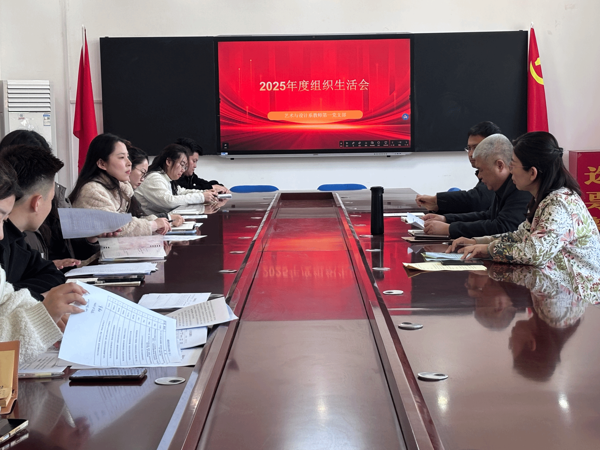 3月12日,艺术与设计系教师第一党支部组织召开2025年度组织生活会,学院党委委员、宣传处(统战部)处长(部长)李金强到会指导。艺术与设计系党总支书记王思顺、系教师第一党支部书记及支部全体党员参加。会议严格按照组织生活会规范流程有序开展。首先,党支部书记通报本次组织生活会会前准备工作,详细介绍党支部组织学习、意见征求、谈心谈话等环节落实情况;代表支部班子作对照检查,深入查摆政治建设、思想建设、作风建设等方面存在的问题,...
