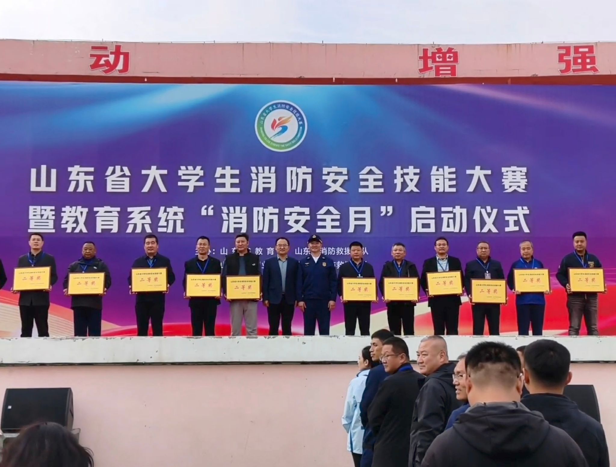 此次大赛由山东省教育厅,山东省消防救援总队联合主办。学院高度重视,为备战此次大赛,在训练条件上提供了充足保障,由保卫处牵头,教务处、总务处、基础部等部门给予了大力支持。