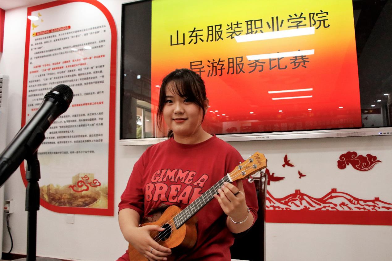 随着激动人心的开场音乐,主持人宣布导游大赛开始。参赛的13名选手像是一名实地导游员,一会儿跟着他们来到岱庙参观泰山神启跸回銮图,一会游览蓬莱阁,一会儿跟着他们攀爬崂山,一会儿又跟随选手来到了泰山十八盘,还有独特的龟蒙山之旅等,各选手通过精彩的讲解,让我们领略了祖国的大好河山,精彩不断,高潮迭起,激情四射。进入才艺展示环节的时候更是把整场比赛推向高潮,多才多艺的选手们给我们带来了唱歌、舞蹈、诗歌朗诵、葫芦丝、手语、吉他弹唱等。学生还在106考场进行了英语口语测试,在6月2日上午进行了线上导游理论知识测试。