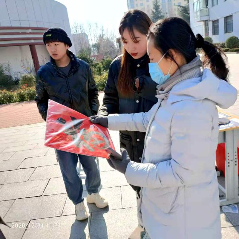 随着活动的开展,吸引了众多师生驻足围观,学院党委委员、副院长王建洪为义卖活动题字,并为学生讲解书法精要。寒冷的天气与滚烫的爱心形成鲜明的对比,现场师生被深深触动。很快作品全部卖出,很多同学留下联系方式,希望以后能有机会参与到此类志愿活动当中。