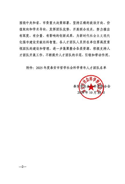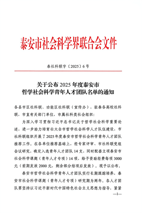 2025年度泰安市哲学社会科学青年人才团队