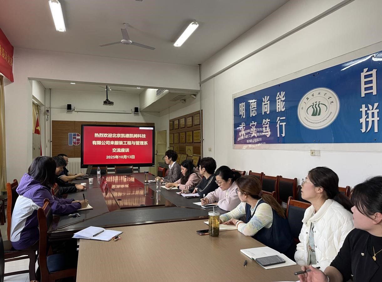 10月13日,北京凯德凯姆科技有限公司总经理年四璧,销售经理、技术总监顾云鹏一行来服装工程与管理系交流座谈,现场展示服装个性化AI定制系统平台。服装工程与管理系服装设计与工艺团队参加座谈会。