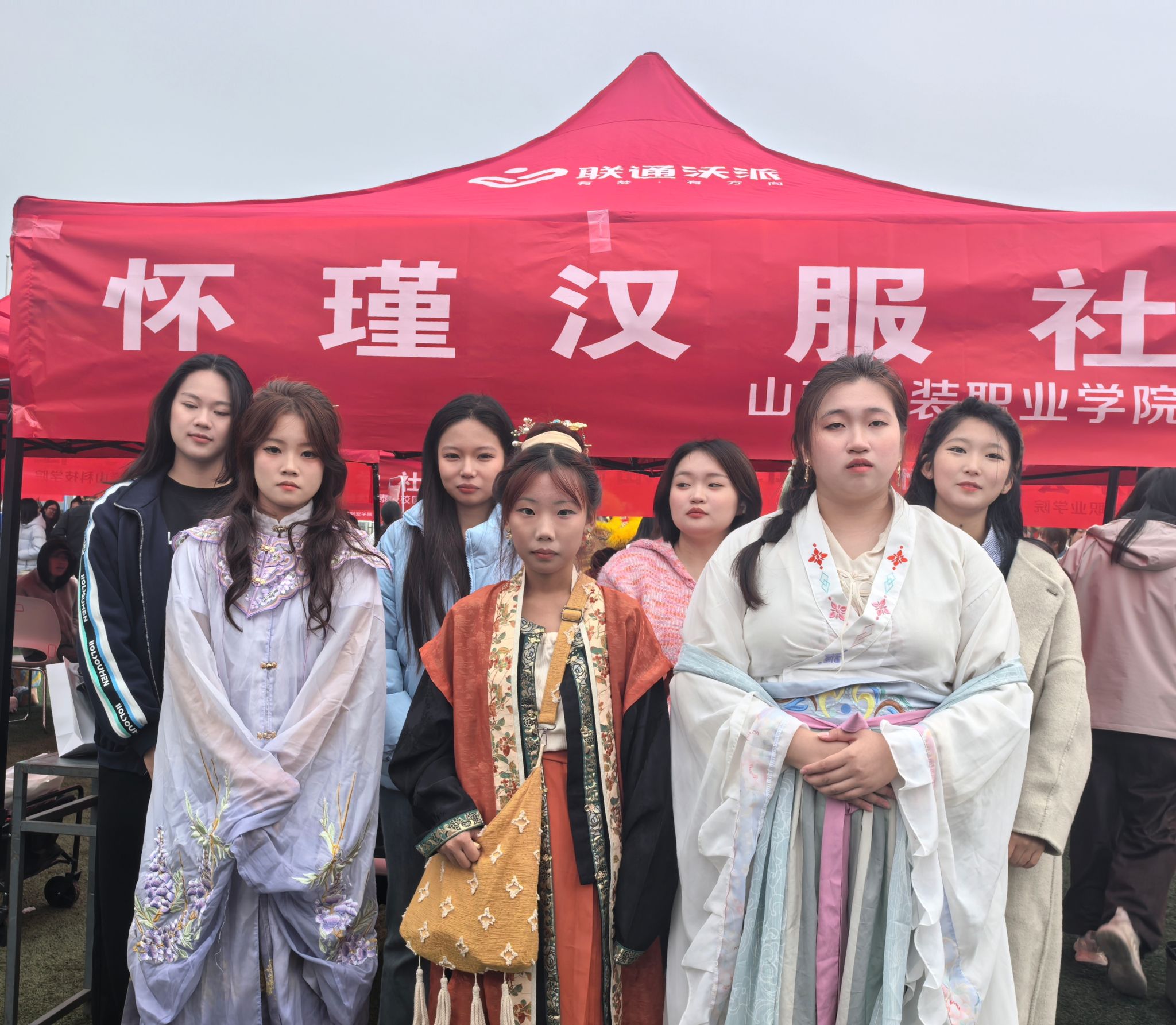 为深化驻泰高校间文化交流,10月26日,驻泰高校大学生文化交流节在山东农业大学顺利开幕。作为山东服装职业学院服装工程与管理系重点打造的特色社团,怀瑾汉服社受邀参展,以“静态展示+文化解读”为核心形式,在高校文化互动中传递中华传统服饰的独特魅力。