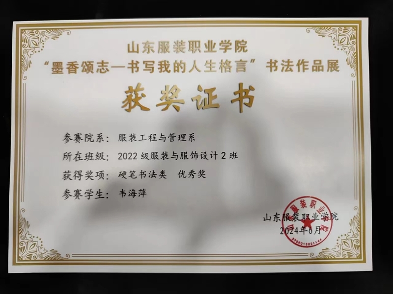为进一步加强学生德育工作,提升学生综合素质着力推进学生成长成才,山东服装职业学院举办“墨香颂志——书写我的人生格言”活动,服装工程管理系学生踊跃参与。
