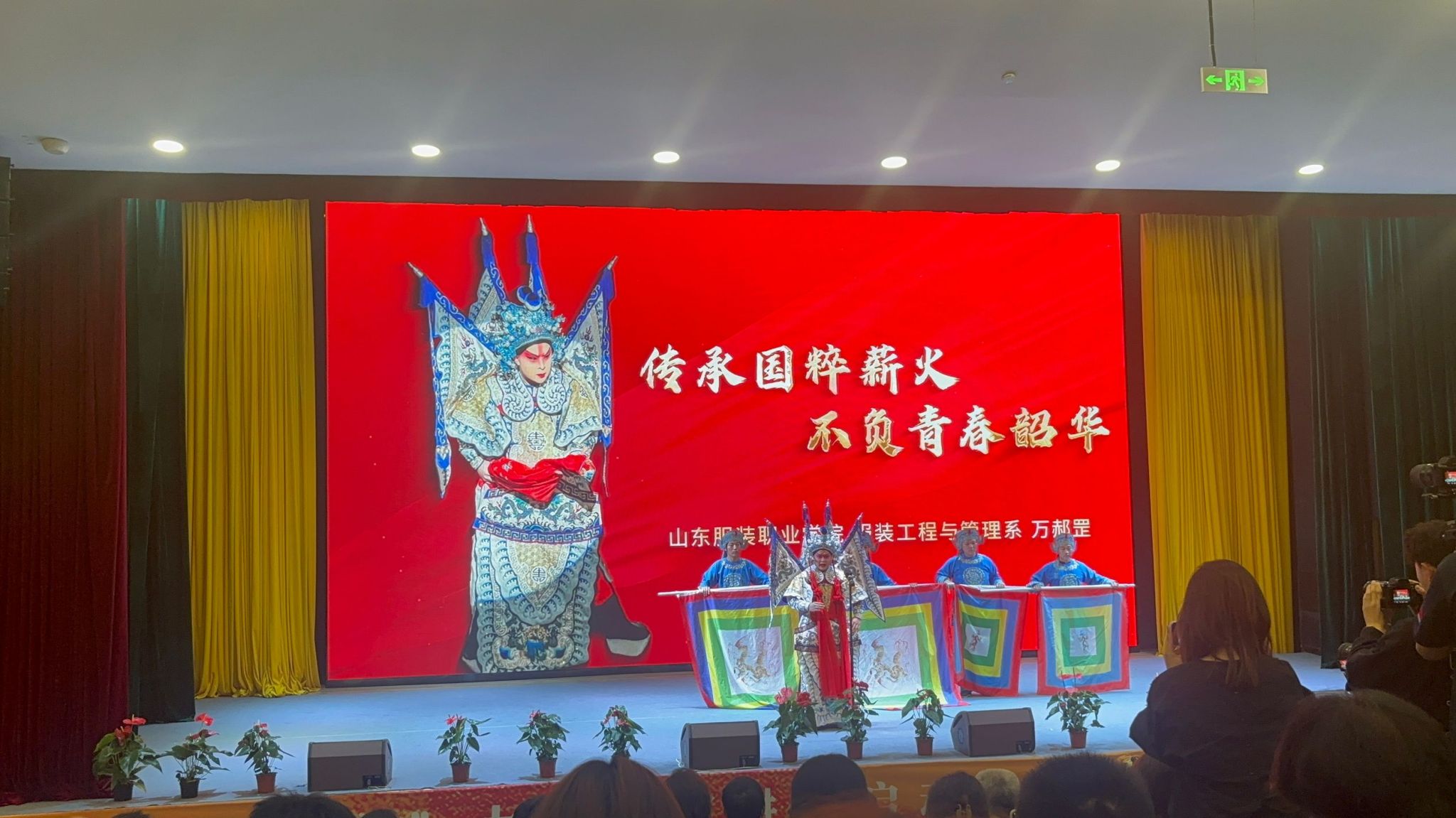 在首场示范宣讲环节,我系学生万郝罡以“传承国粹薪火 不负青春韶华”为题,作精彩主题演讲。他讲述了自己出生在戏曲家庭,从小接受戏曲熏陶并一步步走向戏曲、热爱戏曲的成长历程。通过分享在校期间参与的戏曲服装设计等实践案例,生动诠释了如何将个人理想融入专业学习,在山服育人沃土上绽放非遗传承的时代芳华。其兼具专业深度与情感温度的演讲,赢得现场阵阵掌声。