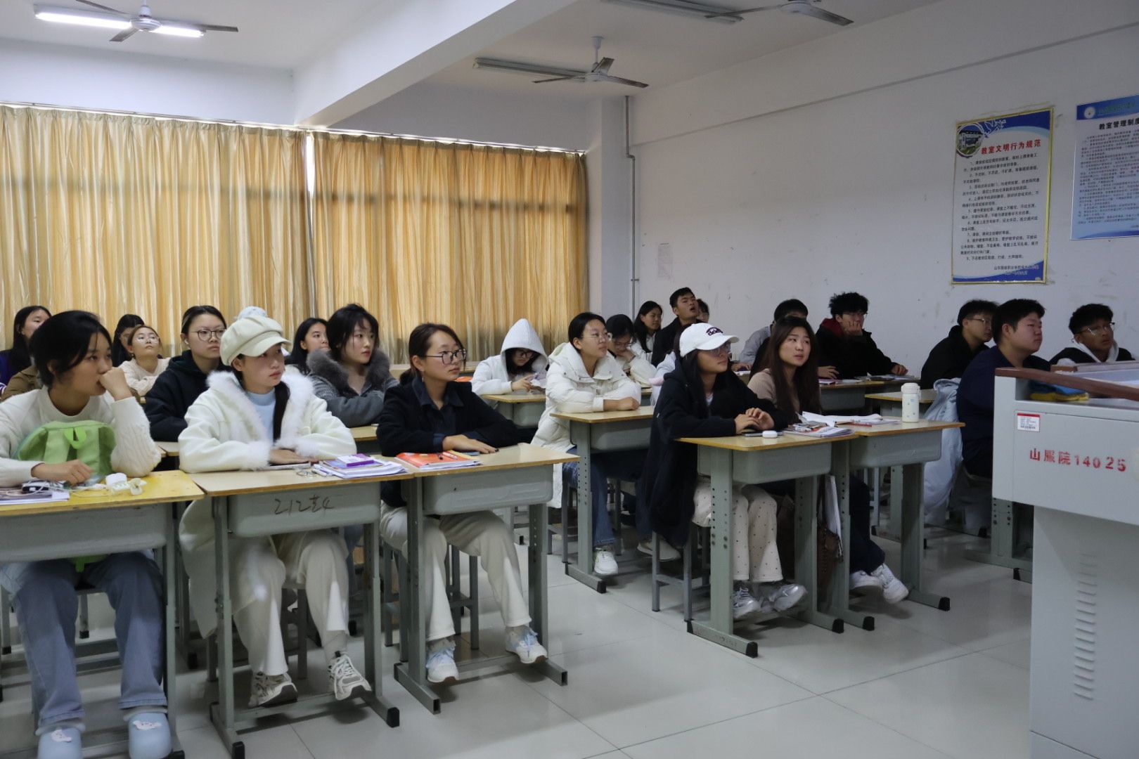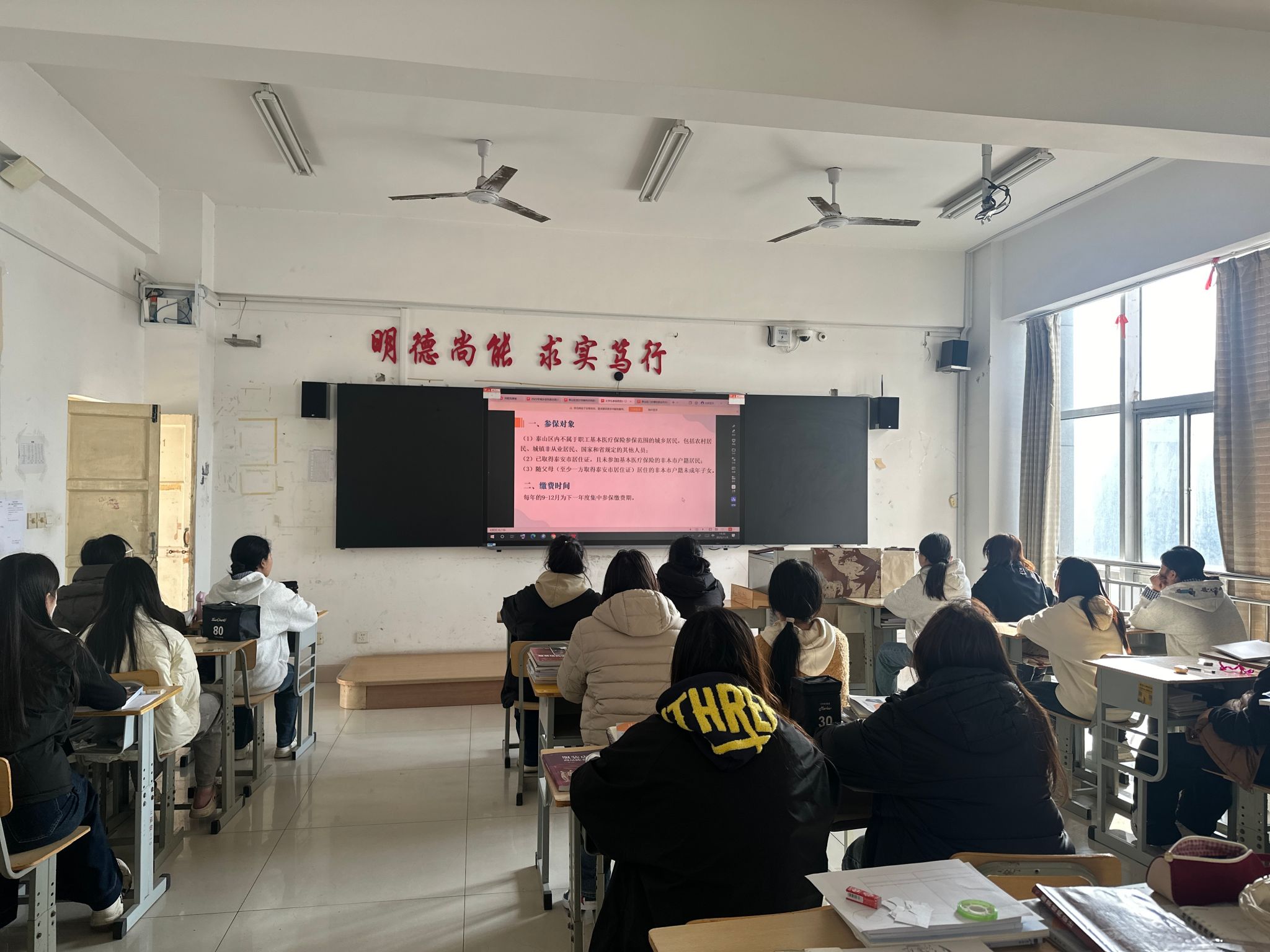 公开课上,宣讲人围绕医保参保流程、住院医疗待遇、备案流程、异地就医等做了深入浅出的讲解,并结合医保改革、基本医疗报销政策、慢性病申报程序等与生活息息相关的政策要点进行了细致解读。宣讲人以通俗易懂的语言将专业复杂的政策转化为“听得懂,用得上”的实用指南,有效消除了学生对医保政策的认知盲区。