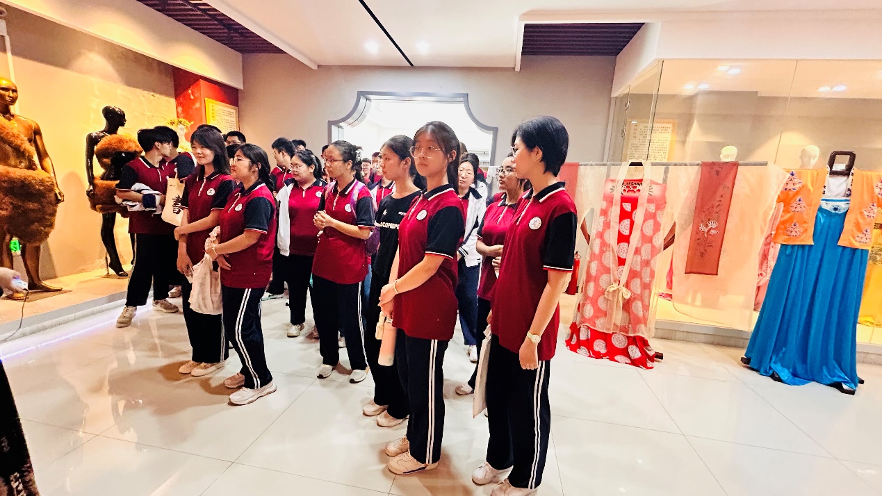 科普活动第一站是参观学院服饰博物馆,近年来,学院博物馆作为学院对外展示的重要窗口成为科普服饰文化的重要阵地,泰安实验中学高二年级的学生步入服饰博物馆,从历朝历代服饰开始,了解不同时期服饰的重要代表,以及由此而映衬出的历史时代背景,深刻的感受着服饰文明的发展,特别是面对不同时期汉服的典型形制,学生们不住发出阵阵赞叹。少数民族服饰又以地域风俗为特点,体现出了多样的民族特色,在薛伟老师的引导下,学生们又步入了一个新的服饰天地,认真倾听着,目不睛的观察着,对展陈的服饰表现出了浓厚的兴趣,薛伟老师从服饰的发展,文明的进程再到文化自信,勇作新时代的青年人,在科普服饰文化的同时又为学生们上了一堂内容丰富的思政课。