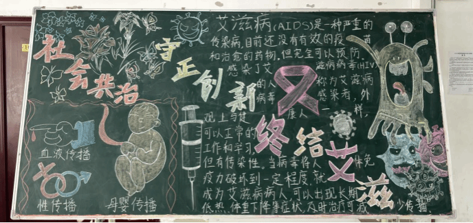 同时,我系广泛发放了精心编印的预防艾滋病宣传手册,手册内容简洁明了,重点突出,涵盖了日常接触、血液传播、性传播等核心预防知识,成为学生们随身携带的“健康宝典”,方便大家随时查阅学习,让防艾知识融入日常。为鼓励学生充分发挥艺术特长,绘制防艾主题宣传板报,以直观、生动的方式传递了“主动检测、知艾防艾、共享健康”的理念,营造了“人人知艾、人人防艾”的浓郁校园文化氛围。