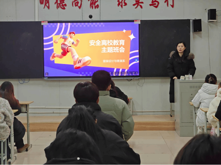 为做好期末学生离校管理与寒假安全教育,增强学生安全防范意识,引导学生文明离校、平安度假,服装设计与表演系于1月20日组织各班开展安全离校教育主题班会。