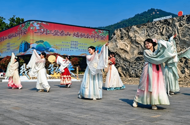 近日,泰山景区先后举办“泰麓春来时·花约彩石溪”2026泰山桃花峪春季赏花活动和2026年“三月三登泰山·蟠桃会祈平安”主题活动。山东服装职业学院服装设计与表演系学子受邀参演,以专业的汉服妆造、优美的古典舞蹈和良好的精神风貌,接连亮相活动现场,充分展现了我系实践育人成效和学子专业风采。
