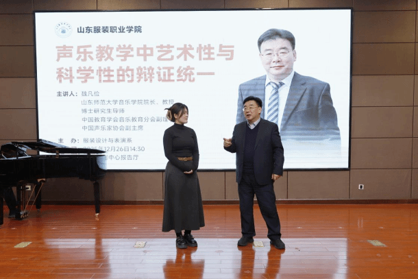 近日,我院服装设计与表演系特邀山东师范大学音乐学院院长、博士生导师魏凡俭教授莅临,举办题为《声乐教学中艺术性与科学性的辩证统一》的学术讲座。此次活动不仅为师生带来了一场高水平的学术盛宴,也标志着院校间专业交流与合作的进一步深化。