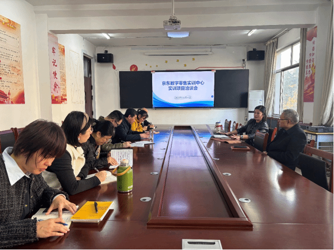 京东数字零售实训中心致力于为智慧商贸领域相关专业打造高质量的实践教学平台,有效贯通从理论到实践的转化路径。杨雪介绍了实训中心的建设现状,表示中心规划设有休闲区与售卖区两大功能板块,预计将于11月下旬正式启用。会上,各专业团队立足本专业特色,系统阐述了计划开展的实训项目。电子商务团队将重点推进直播带货和线上配送APP开发,实现线上线下业务联动;市场营销团队计划结合《商品学实务》课程,开展商品管理及仓储实训;工商企业管理团队聚焦门店运营,安排理货、陈列、销售等岗位实践;国际贸易专业将开设跨境电商产品剪辑与选品等实训内容;大数据与会计专业则计划设置出纳、库存管理、报表分析等财务岗位体验。