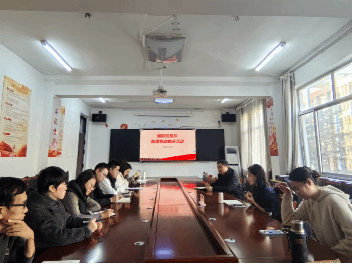 近日,国际贸易系“首课思政”教学展示活动顺利开展。系主任、思政教学部指导教师、首课分享展示教师、及辅导员共同参与。