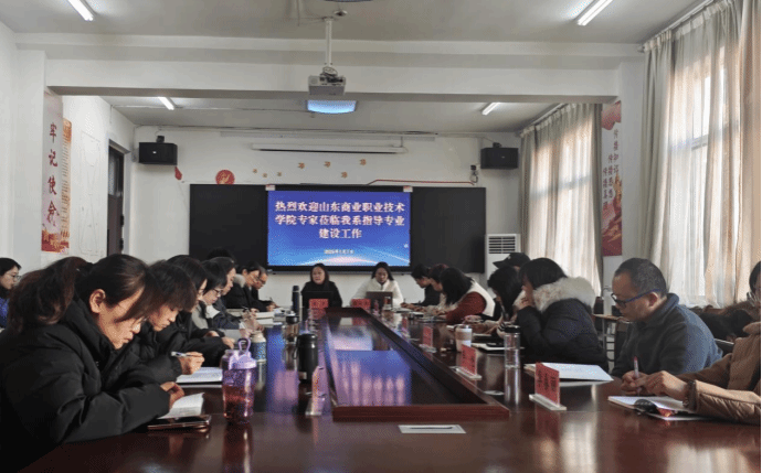 为扎实推进智慧商贸高水平专业群建设,落实核心建设任务,1月7日,国际贸易系特邀山东商业职业技术学院张丽、张晓红两位专家莅临指导。会议由系副主任李开峰主持,党总支副书记王蕴玉及全体专任教师参加。