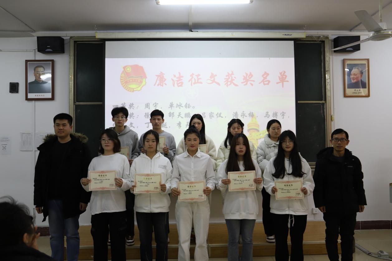 同时,表彰了在本学期廉洁征文比赛和“我在泰山等你来”短视频大赛中获奖的学生和集体,并为其颁发了荣誉证书和奖品。吴老师鼓励同学们在今后的学习生活中坚持梦想、不懈努力,继续发挥坚韧不拔、永不言弃的精神,为校园文化生活注入新活力。