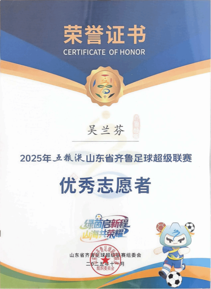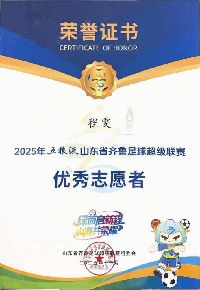 学院教师荣获2025年山东省齐鲁足球超级联赛优秀志愿者称号