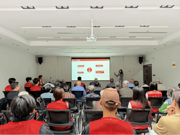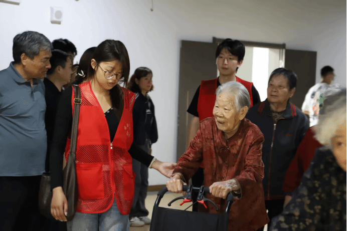 活动围绕“智慧助老”“美丽家园”“倾听陪伴”三大主题展开。在“智慧助老,守护夕阳红”防诈骗课堂上,国际贸易系党员教师石敏通过真实案例和通俗讲解,向老人们介绍了养老诈骗、保健品推销陷阱、电信网络诈骗等常见手段,并传授实用的防范技巧,帮助老人增强识别和应对诈骗的能力。随后,志愿者们分组开展“美丽家园”志愿清扫行动,对中心公共区域进行细致清理,营造整洁舒适的生活环境。在“倾听与陪伴”暖心交流环节,师生与老人一对一或小组互动,走进老人的房间,耐心倾听他们的生活经历与健康状况,了解他们对医养服务的真实需求和建议,传递温暖与关怀。