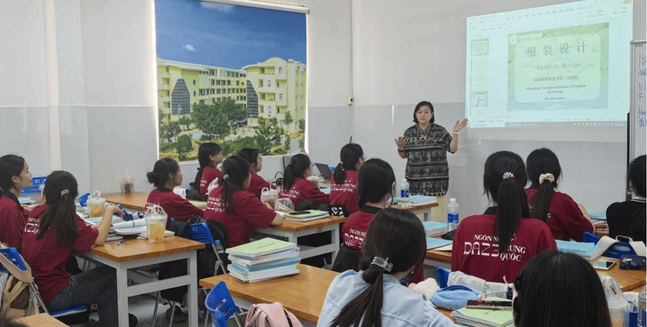 本次培训以“中文+技能”双轨融合教学模式为核心,系统推进语言教学与专业培养。白展展、刘桂荣两位教师分别承担《服装设计》与《纺织服装概论》两门核心课程,每周共计20课时。课程内容紧密对接山东鲁泰集团在越产业需求及茶荣大学订单班学情,通过企业实地调研、学情精准分析,将中国职业教育的最新成果、技术标准和实践案例融入课堂,实现教学内容的先进性、实用性与本地化高度契合。
