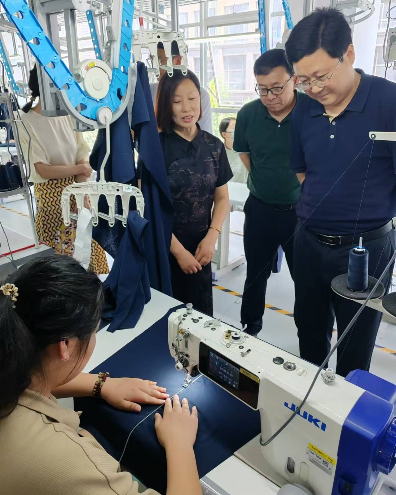 5月24日,学院党委委员、副院长殷广胜带队到学院“服装智能制造”产教融合实践中心——山东梦之翼服饰制造有限公司“厂中校”调研学生实践教学情况,教务处、对外合作处、服装工程与管理系负责同志陪同调研。