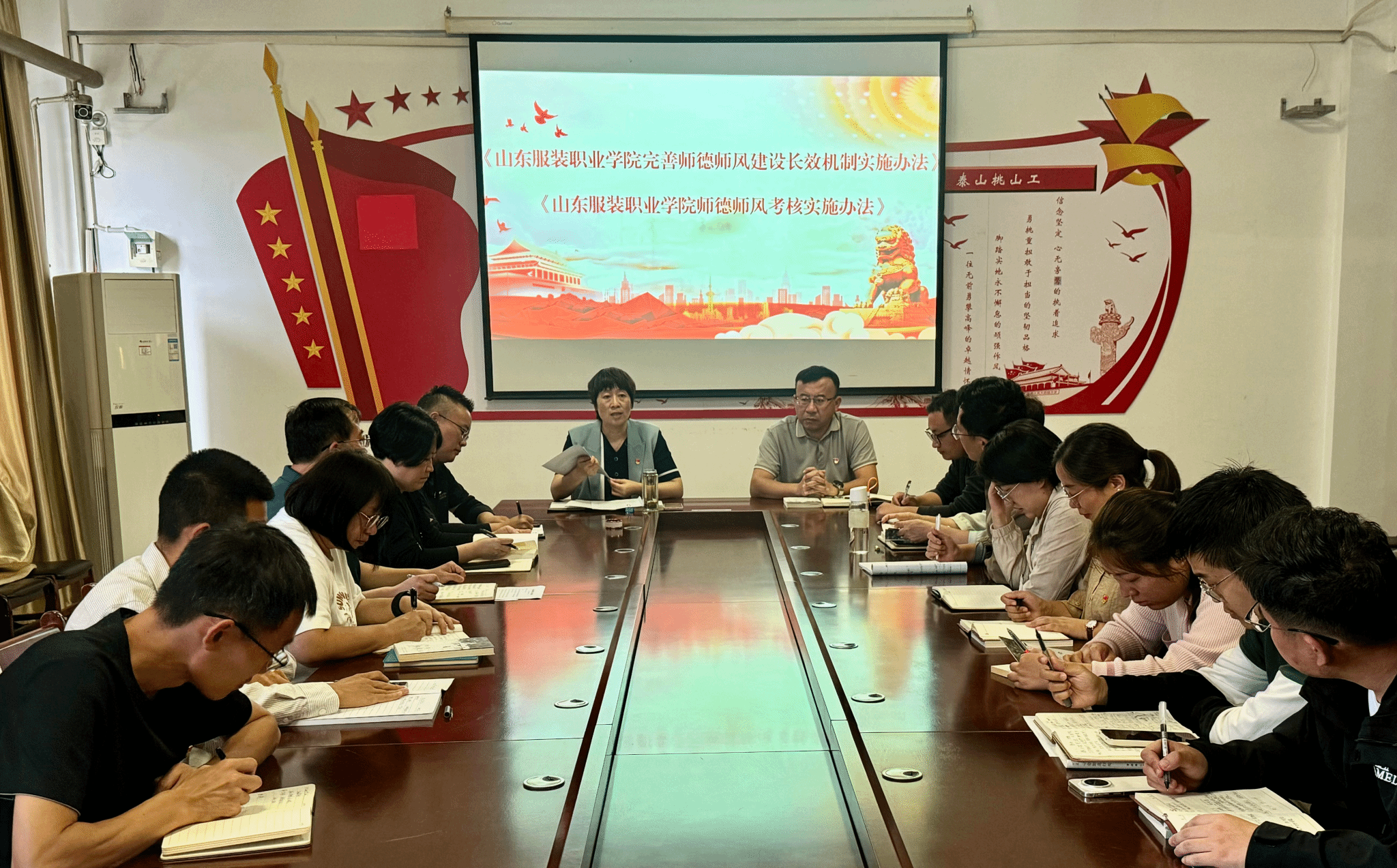 各系、各部门通过集体领学、师德宣讲、读书分享会、重温教师誓词、签订师德承诺书等方式,深入学习贯彻习近平总书记给全国特岗教师代表重要回信精神、仔细研读《新时代高校教师职业行为十项准则》《山东服装职业学院完善师德师风建设长效机制实施办法》《山东服装职业学院师德师风考核实施办法》,通过文件学习,强化师德意识,筑牢师德师风建设根基。