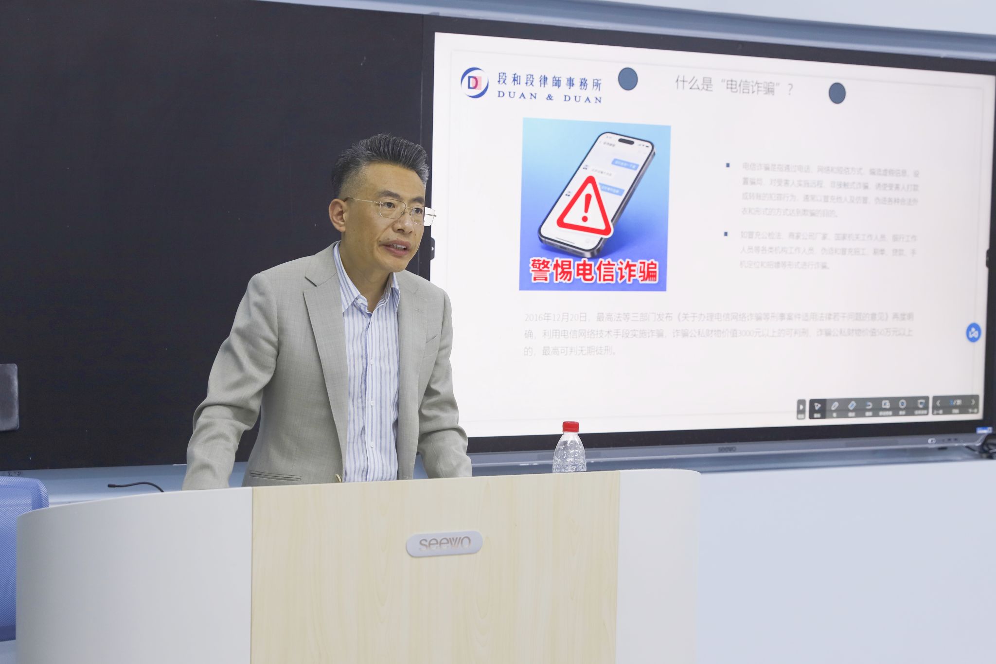陈文冲律师聚焦“反诈”主题,结合真实案例与法律实践,为师生剖析陷阱、传授对策,让反诈知识兼具实用性与针对性。此次干货满满的讲座不仅让新生“知风险”,更“会防范”“懂补救”,真正将反诈知识内化于心、外化于行,助力师生练就识诈防诈的“火眼金睛”,构筑抵制诈骗的“法治盾牌”,为即将开启的大学生活筑牢安全防线。
