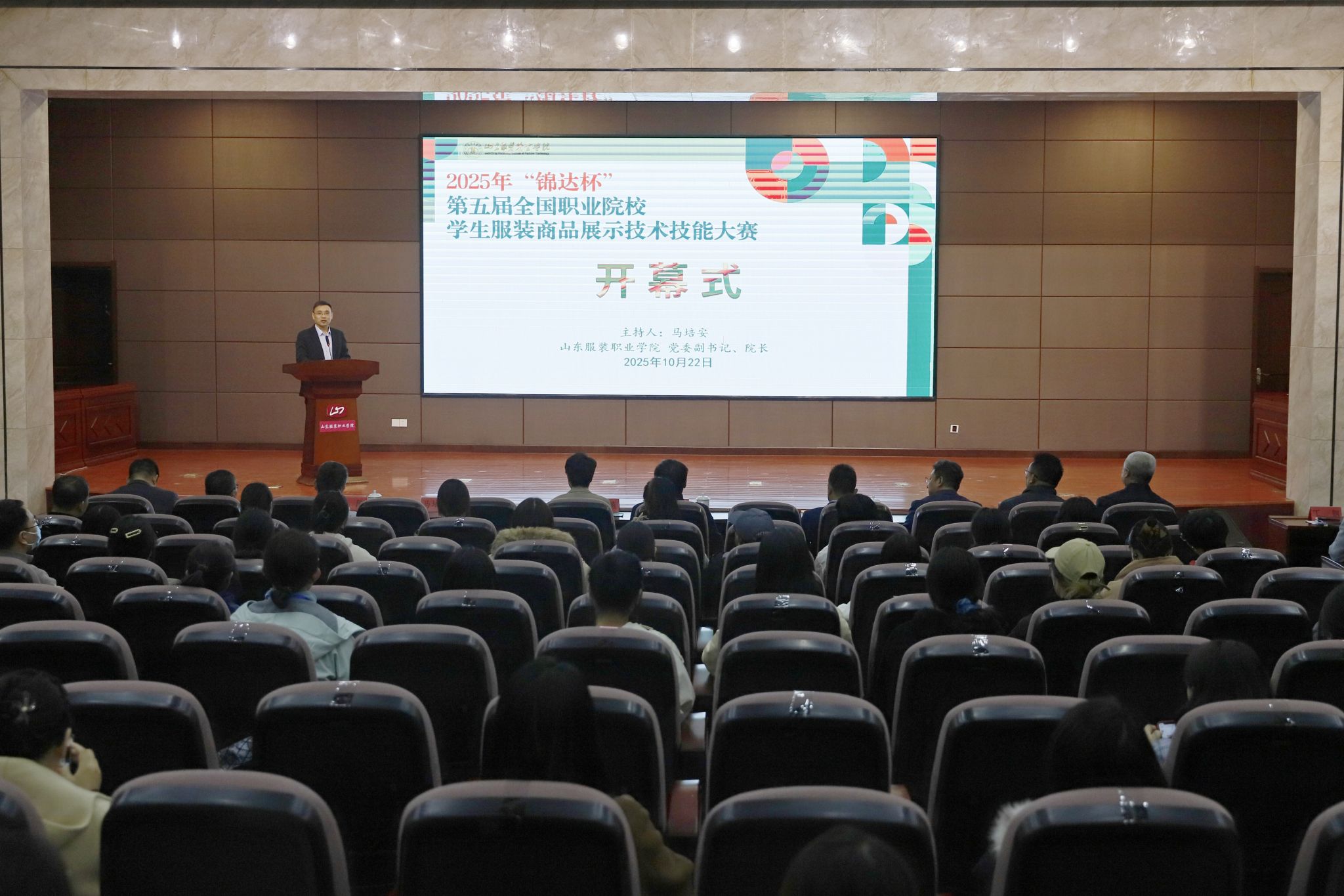 10月22日,“锦达杯”2025年第五届全国职业院校学生服装商品展示技术技能大赛开幕式在山东服装职业学院旅游实训中心举行。中国纺织服装教育学会会长纪晓峰,山东服装职业学院党委书记郝燕,中国纺织服装教育学会副秘书长郑治民,北京锦达科教开发总公司副总经理栾双杰,中国服装设计师协会陈列委员会主任委员韩阳,青岛希柏润工贸有限公司副总经理朱大伟;山东服装职业学院党委委员、副院长陈健,党委委员、宣传处(统战部)处长(部长)李金强,党委委员、党委(院长)办公室主任杨庆福出席开幕式。山东服装职业学院党委副书记、院长马培安主持开幕式。