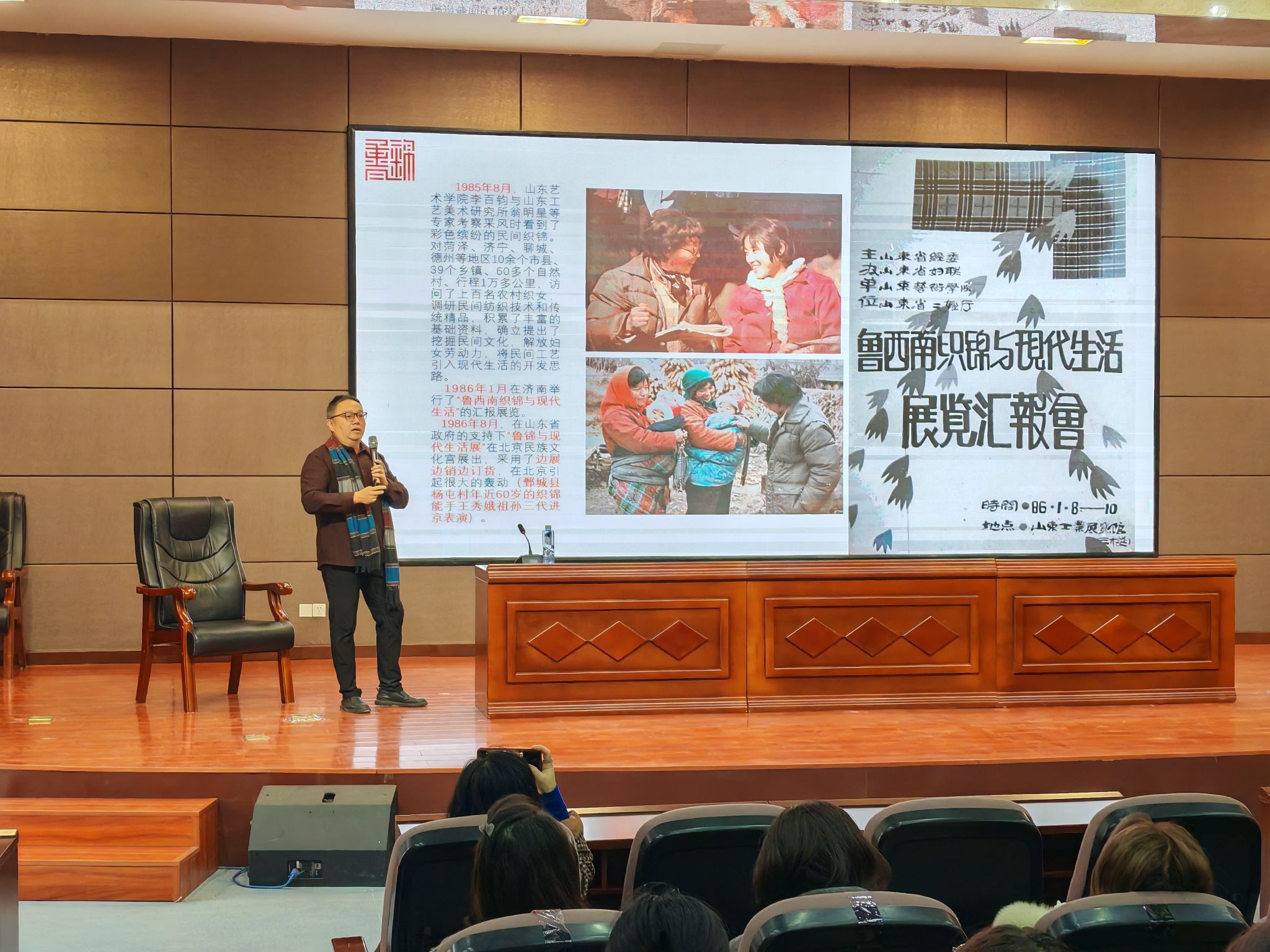 为深化非遗文化传承与服装设计专业的跨界融合,推动“思政教育”与专业教学、实训建设深度衔接,近日,服装设计与表演系邀请山东艺术学院城市艺术与创意学院院长王大海教授,作题为《鲁锦“研学产”一体化保护性开发的山东模式》的专题讲座。学院党委委员、宣传处(统战部)处长(部长)李金强与服装设计与表演系师生代表齐聚现场,共赴鲁锦文化与创新设计的思想盛宴。