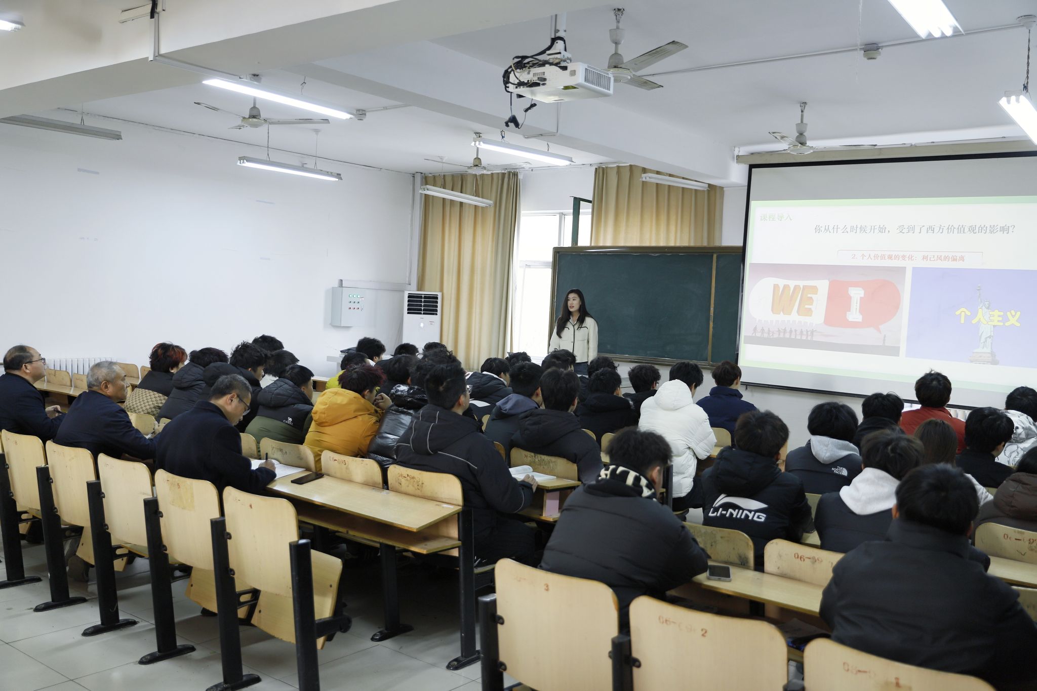 郝燕、马培安分别走进思政教师石岩的《毛泽东思想和中国特色社会主义理论体系概论》课堂和尹艳阳的《思想道德与法治》课堂,深入了解思政课堂教学实际,对思政教师课堂教学进行指导。副院长刘家贵、陈健走进教师许桂杰的课堂,思政部班子成员、教学督导员分头行动,实现了本学期思政主干课听课全覆盖。