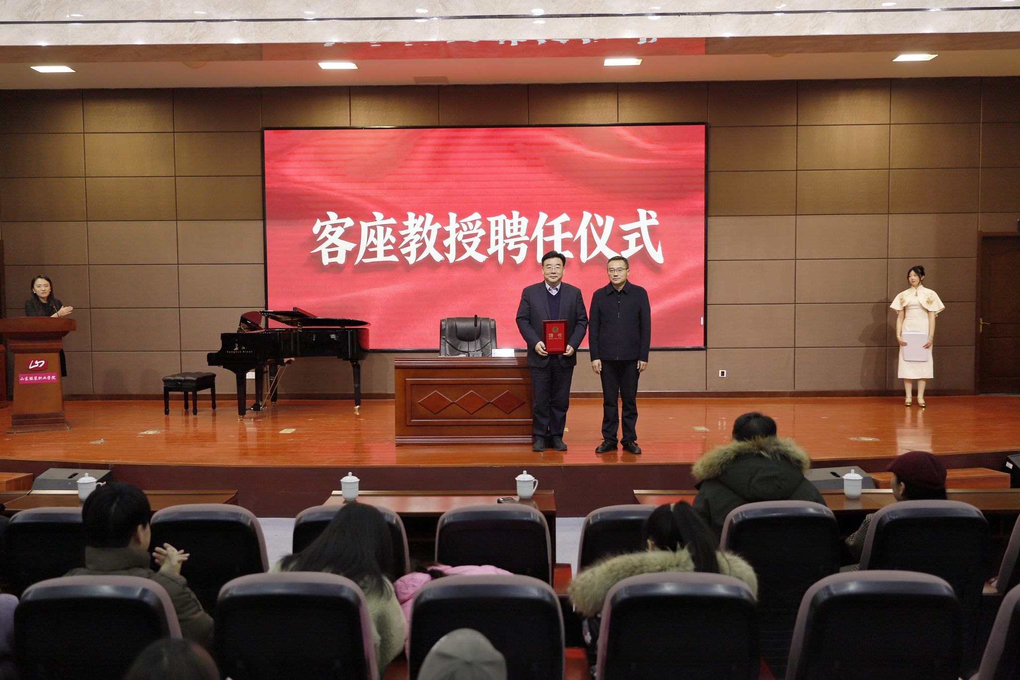 12月26日,山东服装职业学院在旅游实训报告厅举行客座教授聘任仪式,学院院党委委员、副院长陈健出席并代表学院向山东师范大学音乐学院院长、博士生导师魏凡俭教授颁发客座教授聘书。