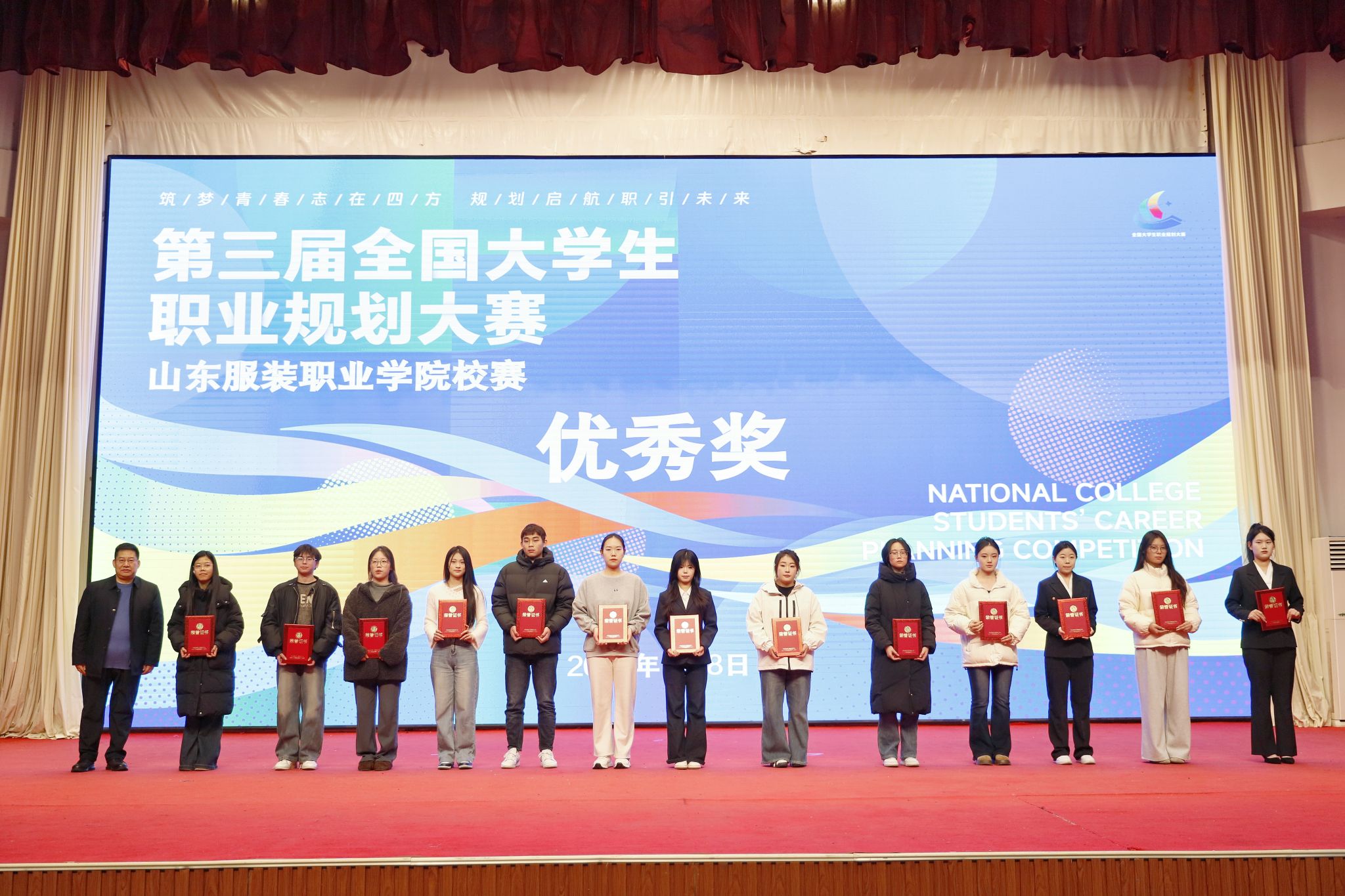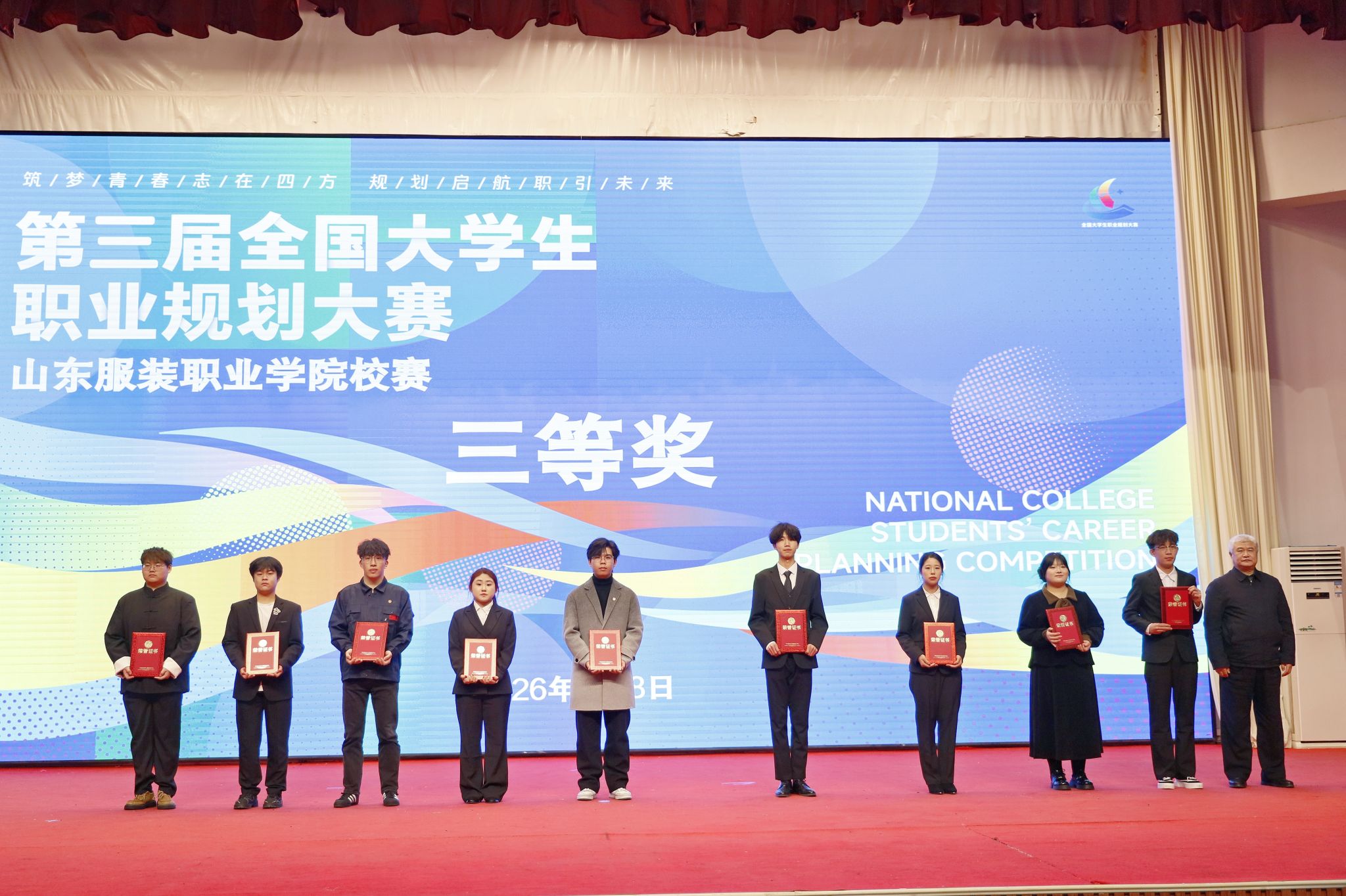 经过最终评审,第三届全国大学生职业规划大赛山东服装职业学院校赛的获奖名单揭晓:在成长赛道中,服装工程与管理系蔡立佳荣获一等奖,机电系魏宇菲和财经系宋昊哲获二等奖,机电系郭金鹏、财经系杨淑惠、艺术与设计系王卫娜、信息工程系齐硕和姚泰宇获三等奖;在就业赛道中,服装设计与表演系苏俊如荣获一等奖,财经系秦凤和机电系李永康获二等奖,机电系刘嘉、服装设计与表演系褚晓飞、艺术与设计系张恒铭、国际贸易系姜煜阳获三等奖。机电系荣获优秀组织奖。