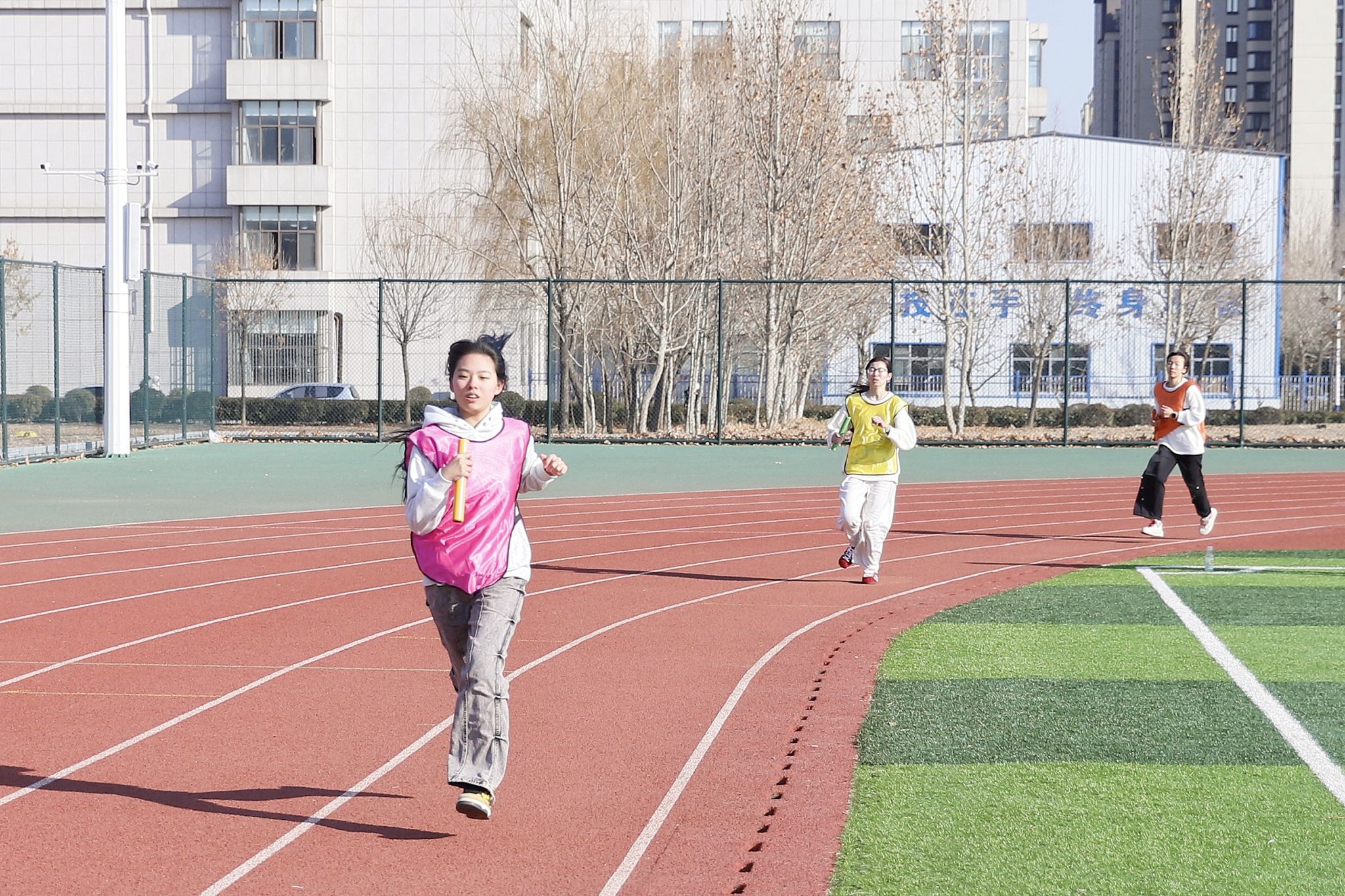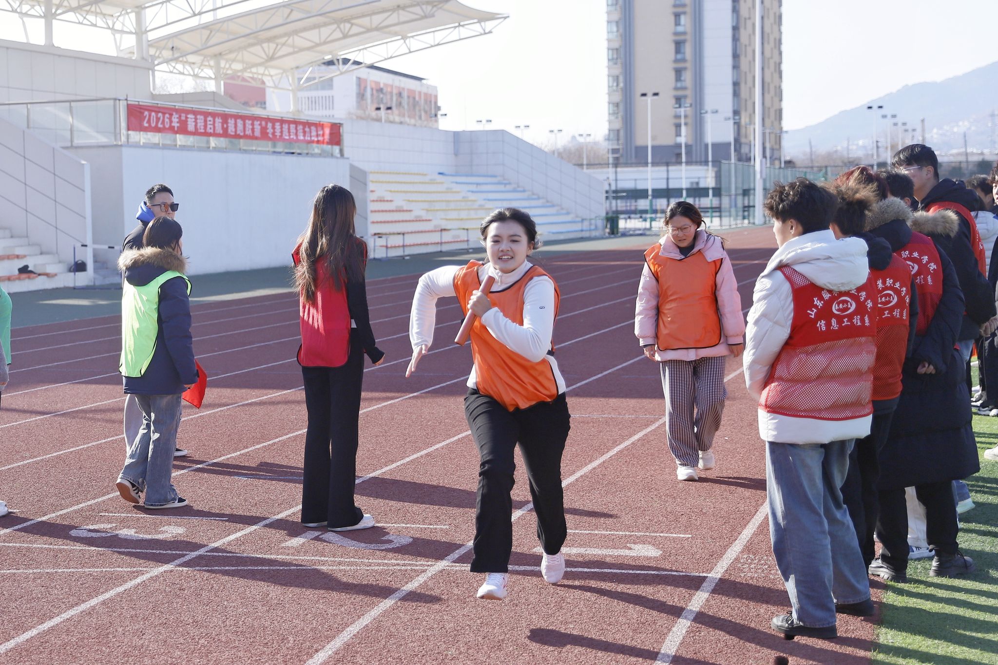寒冬砺志,青春逐光。为践行“健康第一”的教育理念,丰富校园体育文化生活,1月8日下午2点,山东服装职业学院“薪程启航·越跑跃新”冬季越野接力跑比赛激情开赛。来自全院7个系部的代表队同台竞技,用脚步丈量青春赛道,用接力传递奋进力量,为冬日校园注入蓬勃生机。