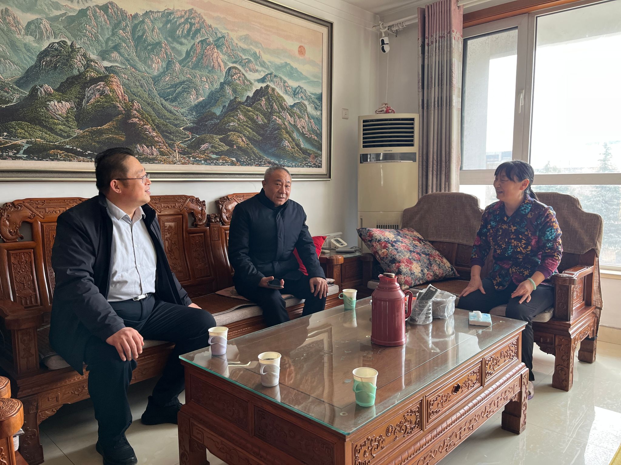 在援渝、援疆干部及教师家中,马培安对他们舍小家为大家、扎根援疆援渝工作一线的辛勤付出与无私奉献给予高度评价,同时对家属的理解和支持致以诚挚感谢,送上节日的祝福,希望他们切实履行援教光荣使命,树立良好形象、做出新的成绩,继续书写职业教育支教帮扶新篇章。