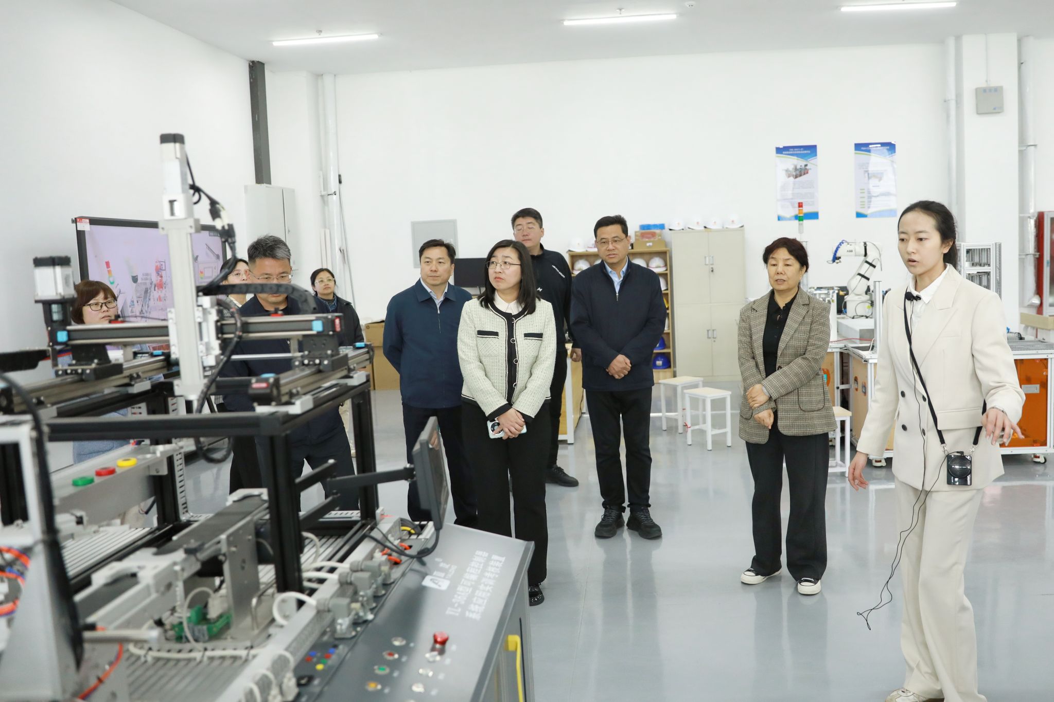 调研组实地察看了学院服饰博物馆及泰安市职业教育公共实训服务中心的服装高定实训室、时尚表演大厅、京东产业学院、凤凰产业学院、可编程控制系统应用编程实训中心等教学实训场所。考察过程中,学院重点介绍了在政校联动促就业、校企协同育人方面的创新举措,展示了近年来在对接政府部门就业资源、引进行业企业资源、打造产教融合平台等方面取得的成效。