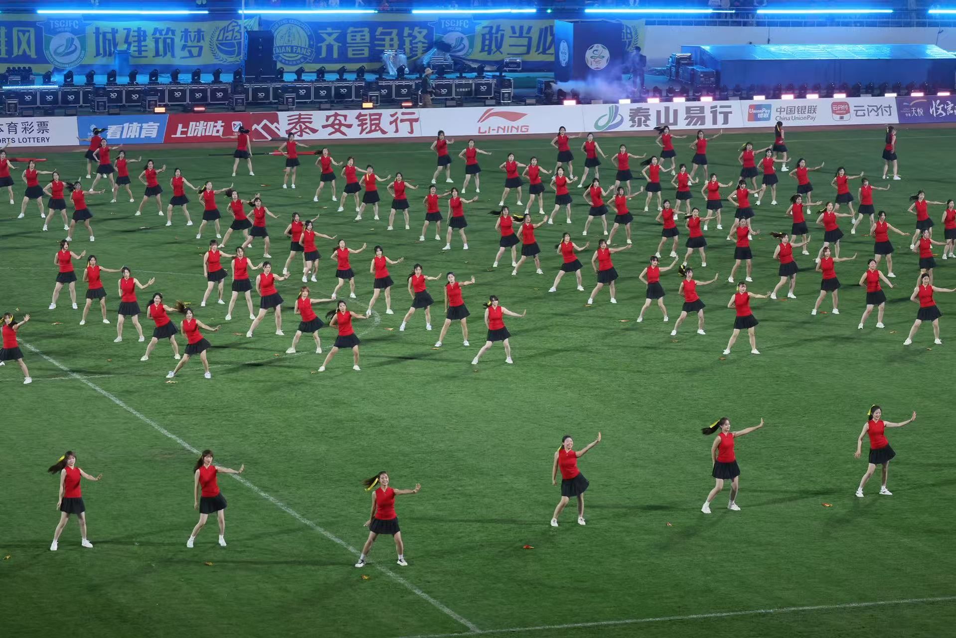 4月18日,2026年山东省齐鲁足球超级联赛开幕式暨揭幕战在泰安启幕。山东服装职业学院财经系精心组织90名学生,亮相开幕式,演绎开场节目《国泰民安》,以青春之姿、昂扬之态,为赛事送上美好祝福,展现了新时代青年学子的家国情怀与精神风采。