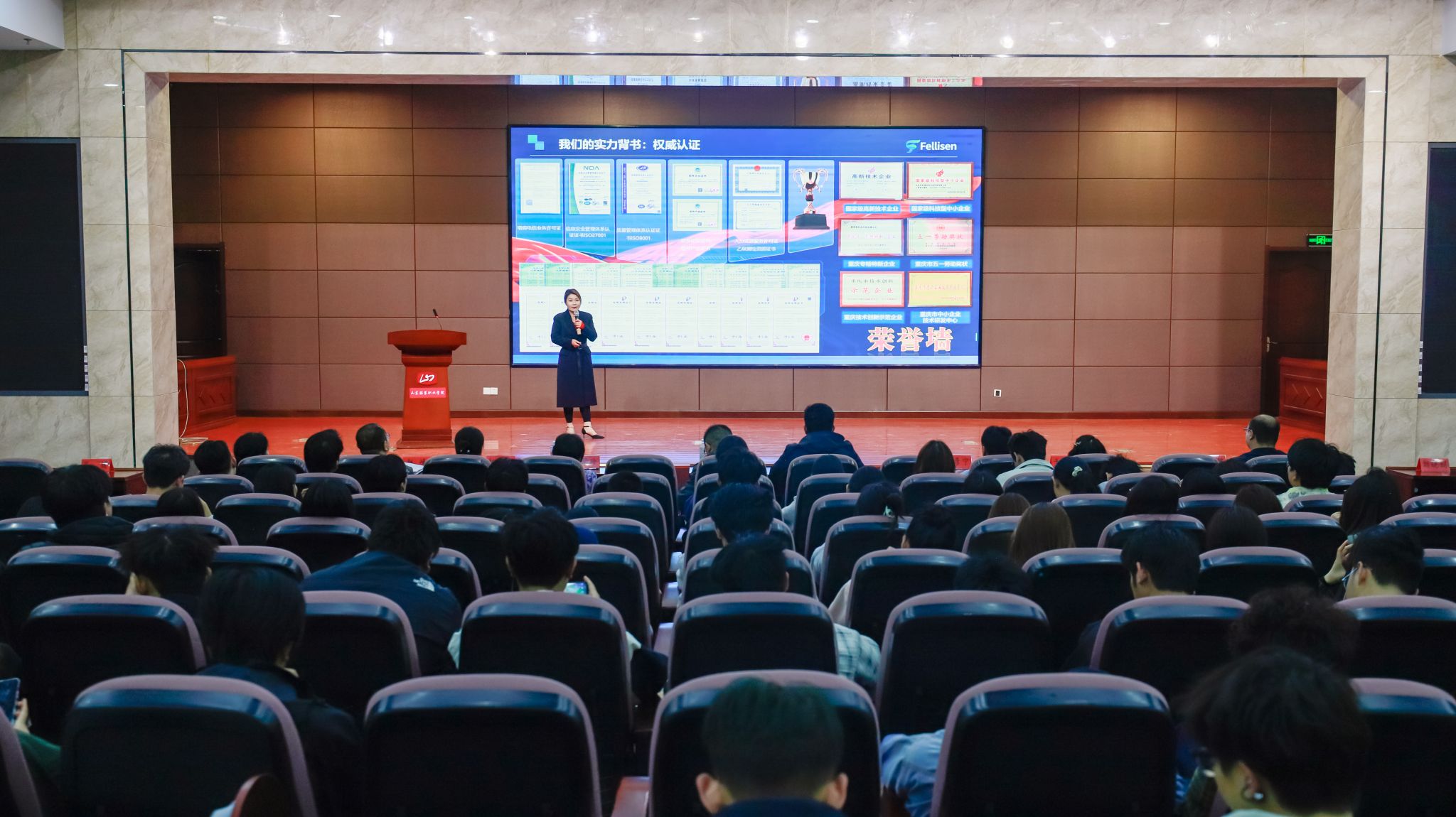 刘光珍代表学院致辞,对到场的领导、企业家表示热烈欢迎与衷心感谢。她介绍,学院始终立足区域经济发展需求,聚焦数字经济、现代服务等重点领域深化产教融合,着力培养高素质技术技能人才,2026届5160名毕业生踏实肯干、潜力突出,是服务地方产业发展的重要青年力量。本次专场招聘宣讲,是政校企协同育人、精准匹配人才与岗位的关键举措,既为企业注入新鲜血液,也为学子拓宽就业渠道,更为泰安数字经济高质量发展提供人才支撑。