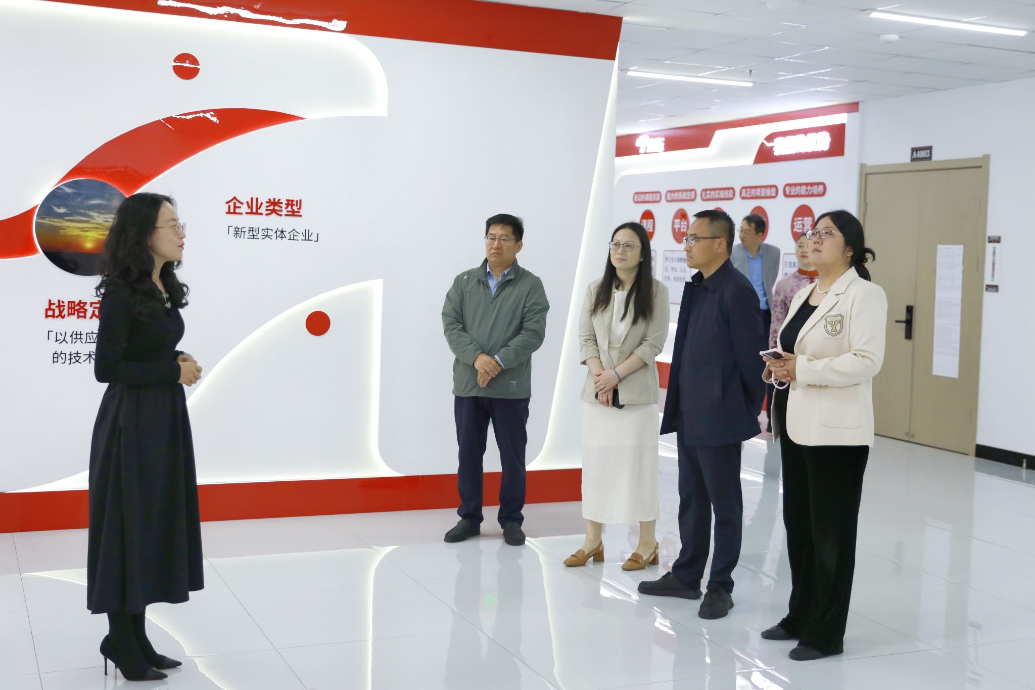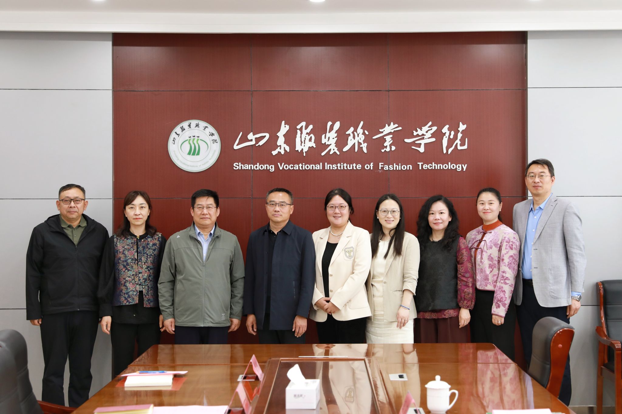 柯镂软件、上海信玺两家企业负责人到学院服饰博物馆及泰安市职业教育公共实训中心的服装高定中心、服装表演大厅、山服岱银融合中心、京东产业学院、凤凰产业学院、机电实训室等地实地考察,随后双方在行政楼座谈交流。