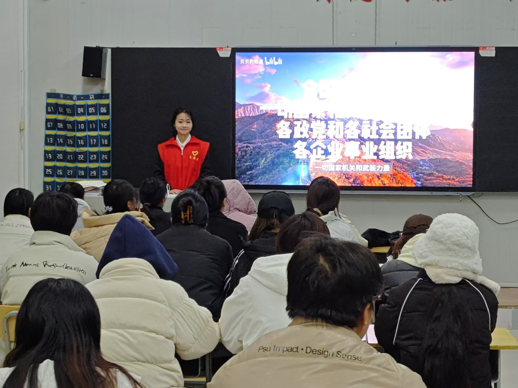 12月4日是国家宪法日,艺术与设计系“文明宣讲”志愿服务队利用晚自习时间进班宣讲宪法知识,提升学生的宪法意识与法治观念,为推动校园法治文化建设发挥积极作用。