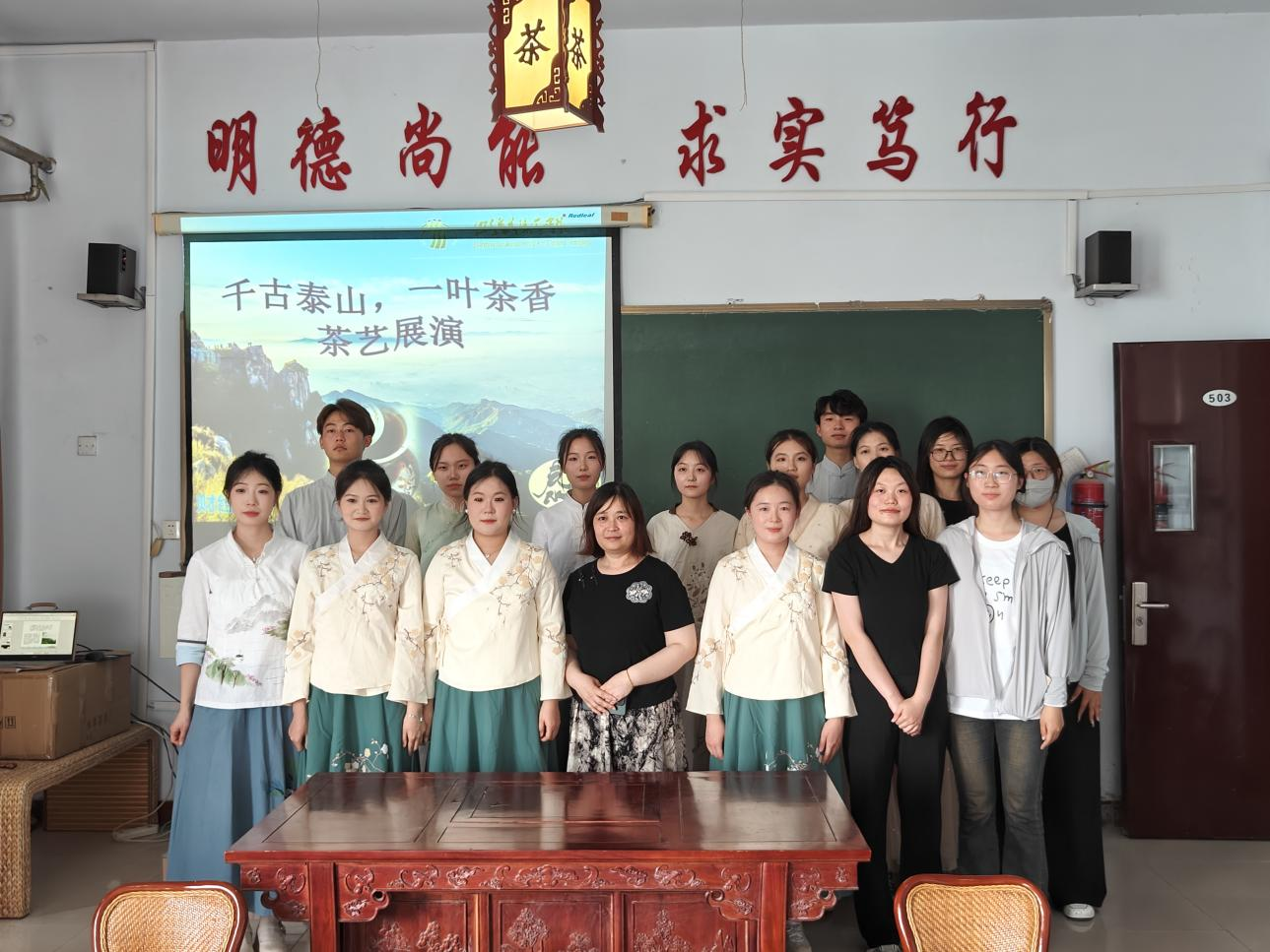 为弘扬我国茶文化,推广茶艺知识,传承茶艺技艺,在财经系酒店管理专业副教授贾静老师精心指导下,2024年5月21日,山东服装职业学院财经系开展“千古泰山,一叶茶香”茶艺展演活动。本次活动邀请学工处李增华、刘辉老师,财经系主任宗晓健、财经系教学科科长李玉芹参加。