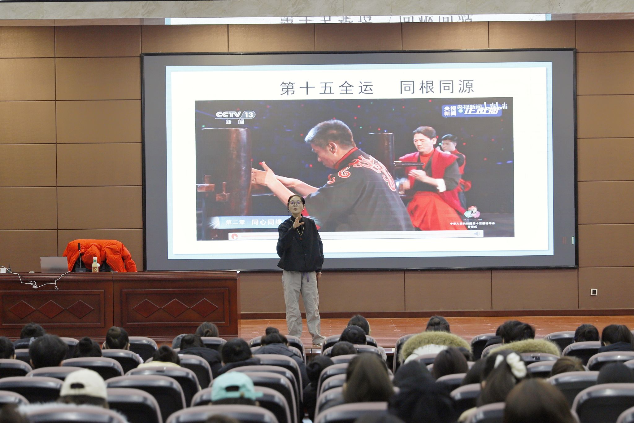 胡筱西结合第十五届全国运动会、亚运会等重大活动统筹经验,解读了大型运动会开闭幕式舞蹈编排核心逻辑,并以《初莲》《绿意》等经典作品为例,分享“扎根生活、映照心灵”的创作主张,提出契合时代、捕捉真情、坚守艺术规律的“三个尊重”准则。她围绕科技赋能与精神传承,阐明“科技是工具,情感是核心”的融合原则,传递“文以载道,舞以传情”的艺术使命。胡筱西寄语学生,要做时代的记录者、真情的传递者、智慧的整合者。