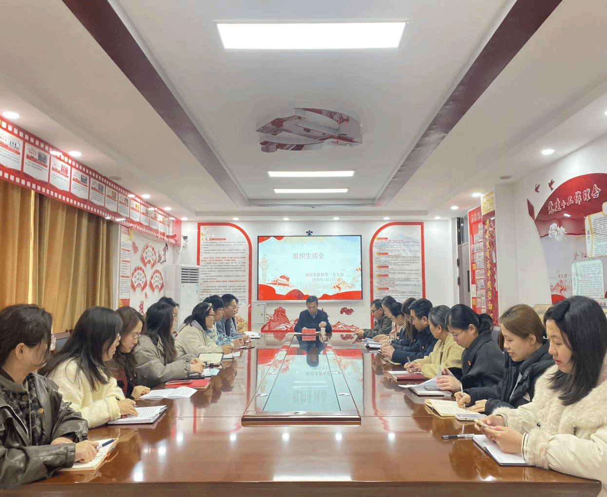 3月17日下午,财经系教师第一党支部在财经会议室召开2025年度组织生活会。学院党委委员、组织人事处处长王志荣到会指导,财经系主任宗晓健、系党总支副书记侯华东及党支部全体党员参加会议。