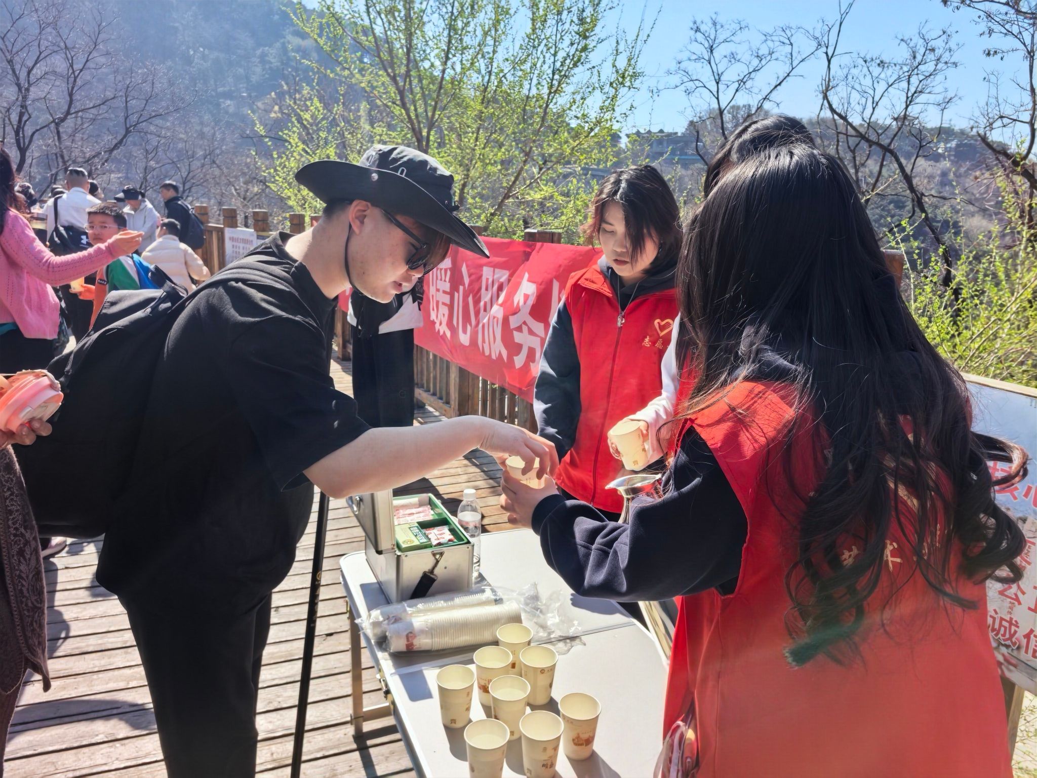 志愿者们专门设立了“暖心服务站”,为有需要的游客提供免费的热水、应急药品及简单包扎服务,赢得游客点赞。此次志愿服务活动展现了艺术与设计系学子良好的精神风貌和责任担当,为假期期间的泰山景区增添了一道亮丽的青春风景线。