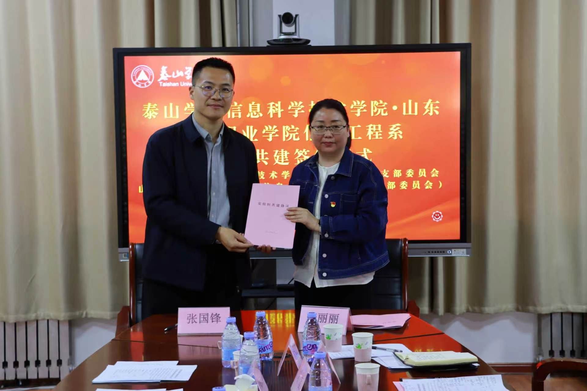 在党组织共建环节,双方党支部正式签署《党组织共建协议》,明确了“党建联学、资源共享、教研联动、人才共育”的长效合作机制,以高质量党建为引领,推动贯通培养工作走深走实。在学生交流环节,泰山学院教师钱艺系统介绍了相关专业的发展前景与课程体系,双方师生就学业规划、就业方向等话题进行了热烈互动。