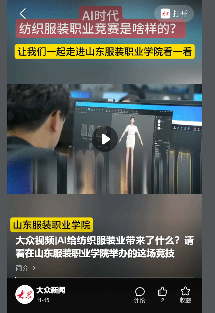 【大众新闻】大众视频|AI给纺织服装业带来了什么,请看山东服装职业学院举办的这场竞技