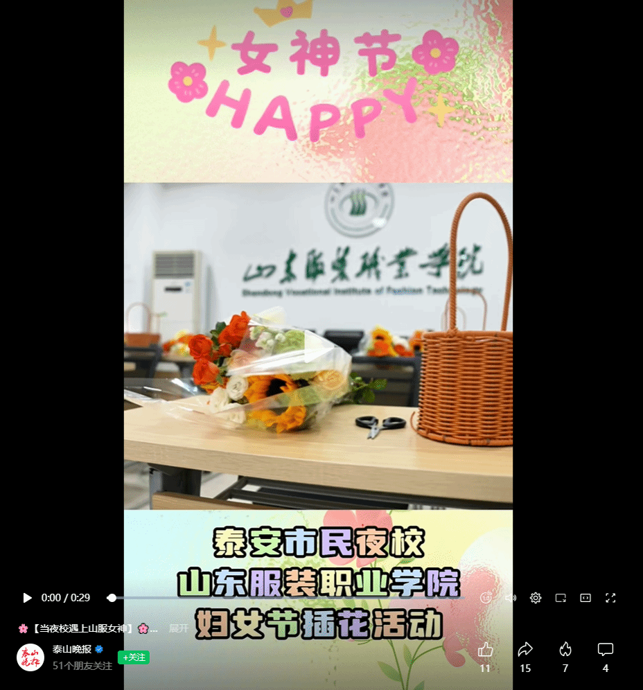 【泰山晚报】山东服装职业学院妇女节插花活动