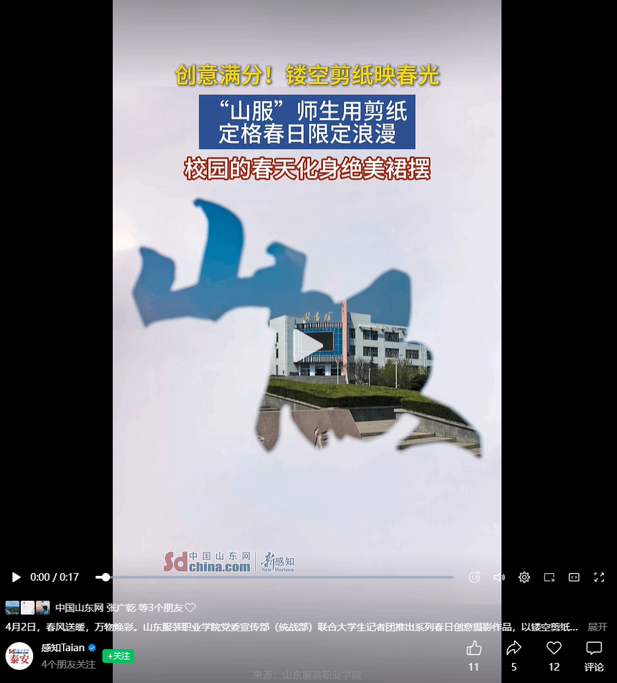 【感知taian】4月2日,春风送暖,万物焕彩。山东服装职业学院党委宣传部(统战部)联合大学生记者团推出系列春日创意得影作品